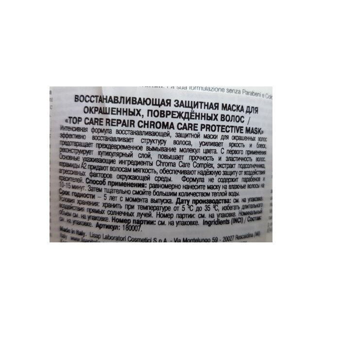 На сегодняшний день товар «LISAP MILANO Маска восстанавливающая защитная для окрашенных поврежденных волос / Top Care 250 мл (180007000)» можно купить с кешбеком в 1 магазине: Галерея Косметики