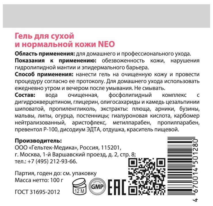 ГЕЛЬТЕК Гель для сухой и нормальной кожи / NEO Hydratation 100 г (4670014501280)