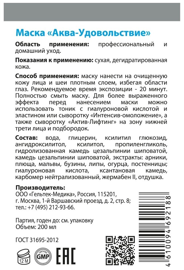 Сервис сравнения цен СкидкаГИД предлагает сравнить цены на товар «ГЕЛЬТЕК Маска Аква удовольствие / Hydratation 200 г (4670014502423)»