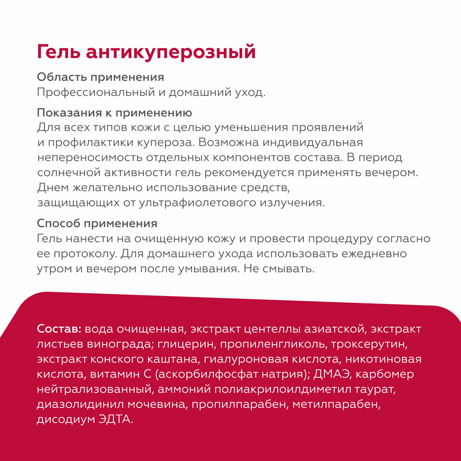 «Очень классный гель и советуют его многие косметологи, применяю его как отдельно ,на ночь, так и с аппаратом микротоковой терапии, очень нравится эффект, уменьшилась значительно одна сосудистая звездочка,да и в целом цвет лица стал менее красным, единственное при микротоках слишком быстро впитывается,что увеличивает его расход».