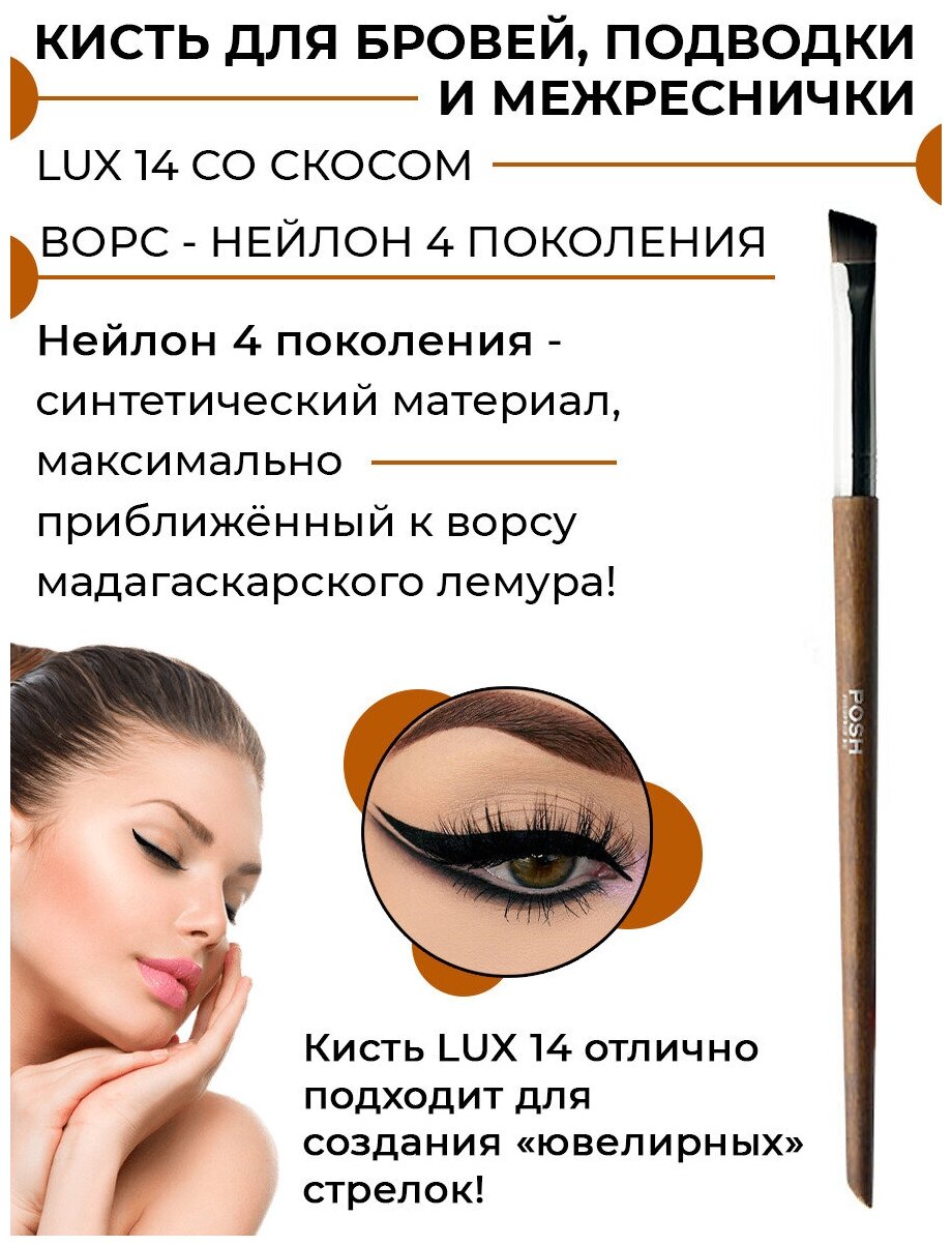 POSH Кисть для бровей подводки и прорисовки межресничного пространства ворс нейлон / LUX 14 (29745)