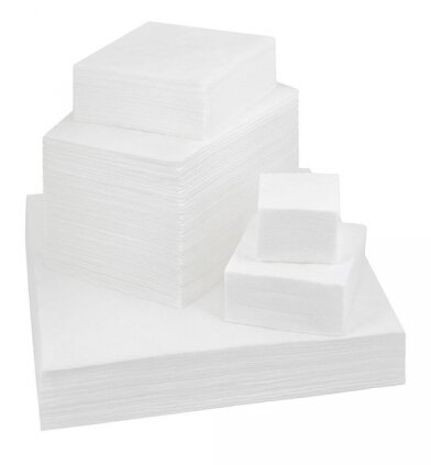 Салфетки изготовлены из спанлейса с высокими гигроскопичными свойствами. Используются для различных косметических, маникюрных и педикюрных процедур. Размер: 20*20 см, 100 шт.