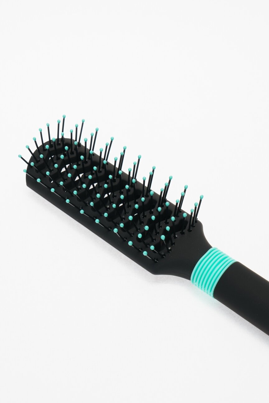 Продувная щетка из серии "Бирюза" выполнена в оригинальном черно-бирюзовом цвете. Удобное в использовании покрытие SoftTouch. На ручке щётки есть удобные прорезиненные вставки для комфортного расположения в руке. Закругленная ручка, нейлоновые штифты. Легкая и удобная. Подходит для волос любого типа.