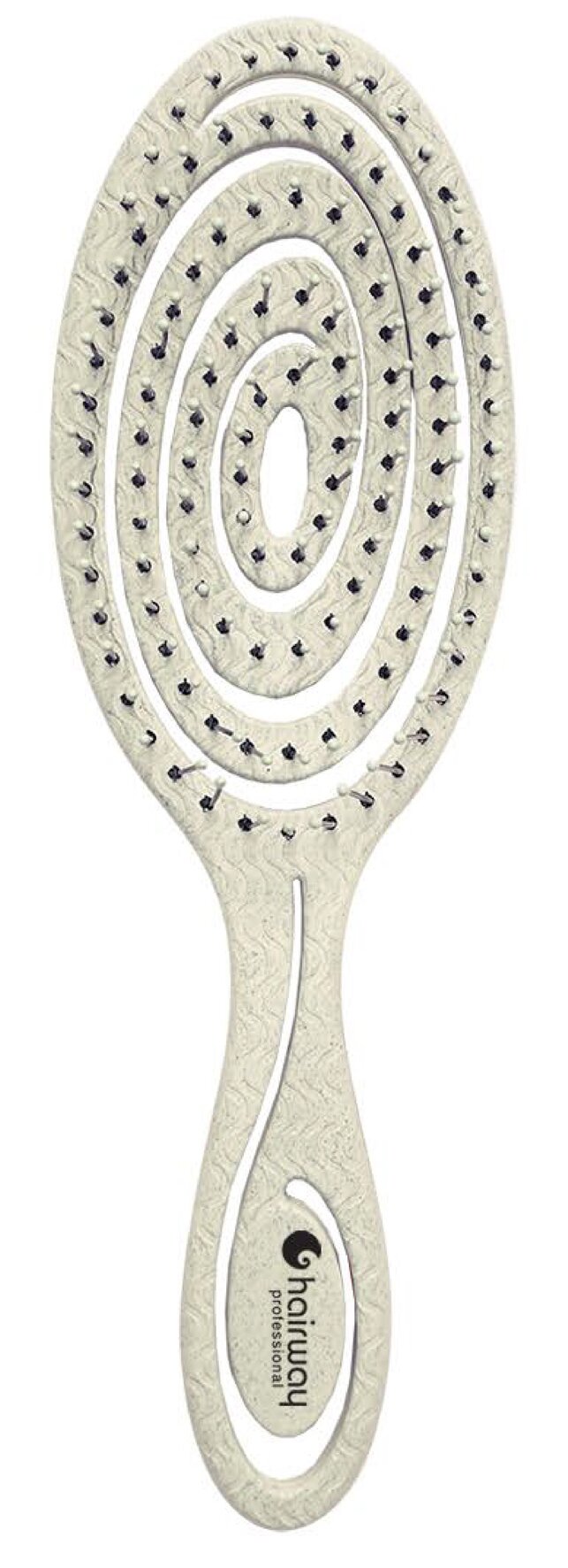 Щетка HAIRWAY ECO Wheat изготовлена из волокон пшеницы, кукурузного крахмала, маниоки и смолы. Это натуральное сырье, биоразлагаемое. Эластичная нейлоновая щетина позволяет щетке бережно расчёсывать волосы. Массажная щетка справится с мокрыми и спутанными волосами. Обеспечивает массажный эффект и не травмирует кожу головы.