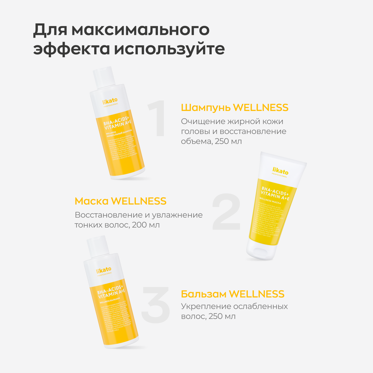 LIKATO PROFESSIONAL Маска для здорового блеска и объема жирных волос / WELLNESS 250 мл (4603757310826)