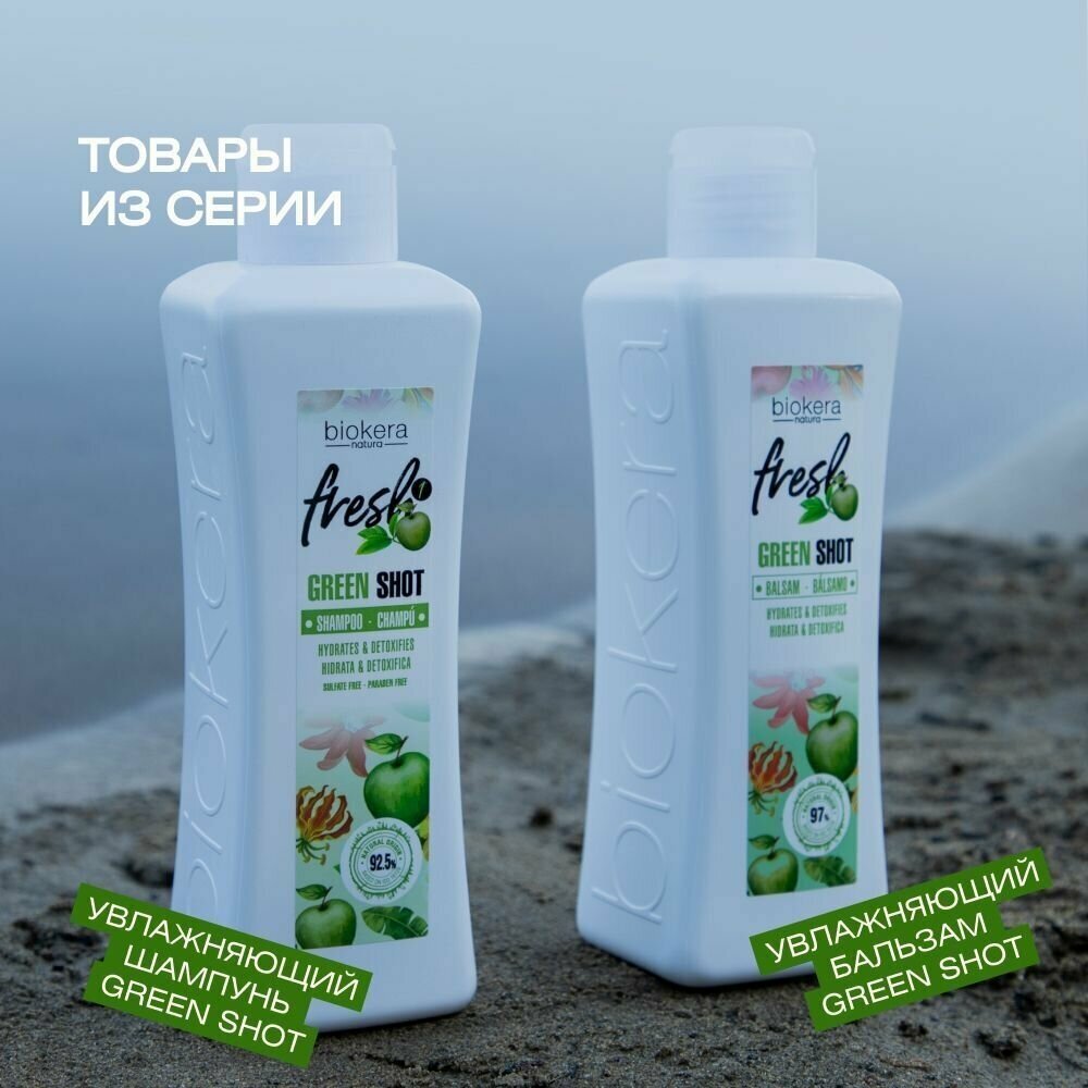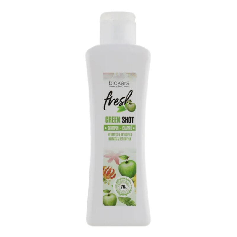 Шампунь Green Shot Biokera глубоко увлажняет волосы, очищает и выводит токсины. Его формула, включает коктейль из отборных натуральных ингредиентов, обеспечивает ощущение максимальной свежести и придает волосам жизненную силу, чтобы вы могли наслаждаться ощущением чистоты и свежести ваших волос. Обладает потрясающим яблочным ароматом.