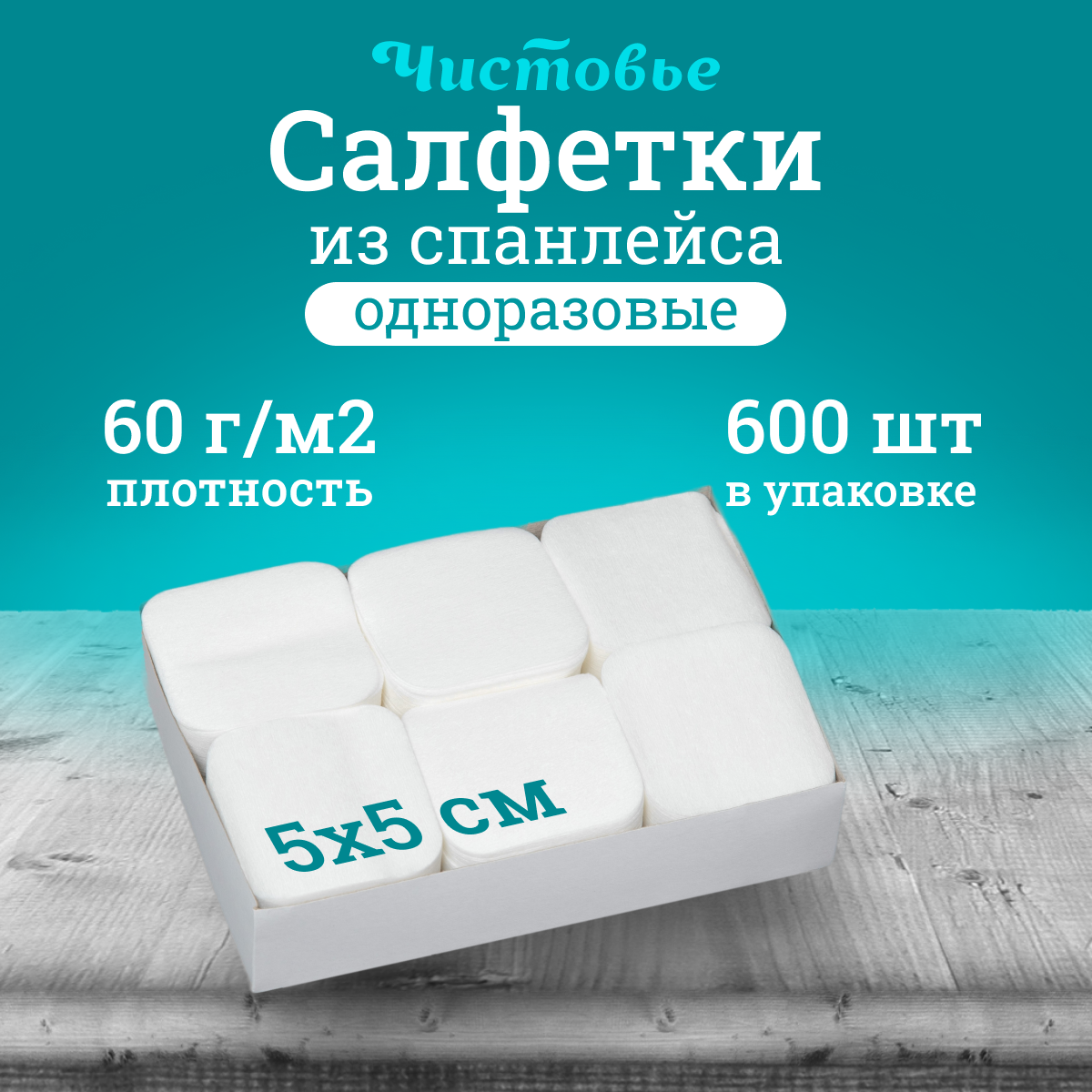 ЧИСТОВЬЕ Салфетка спанлейс 5 х 5 см безворсовые жесткие 600 шт/упк (603-298) (размер: unisex)
