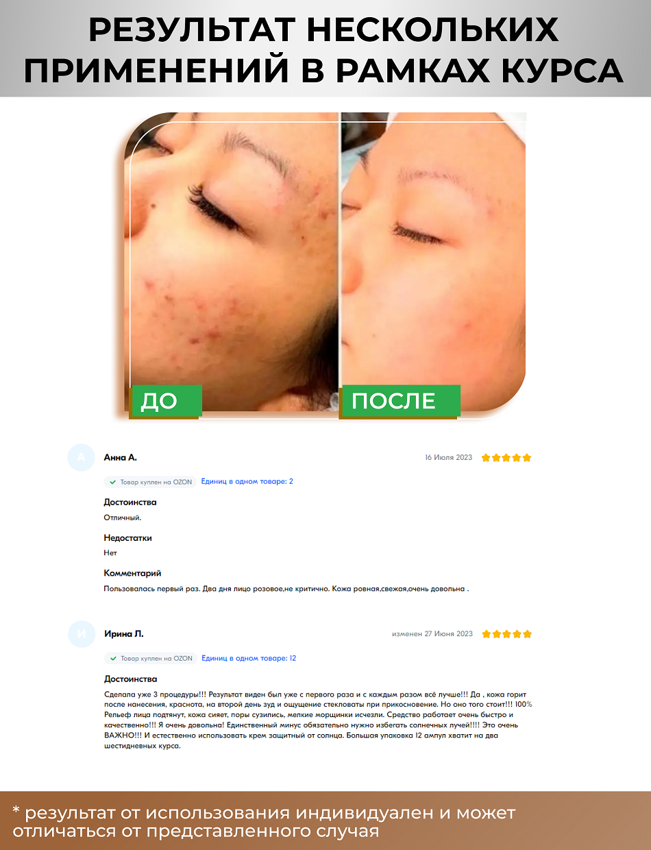 устранение или уменьшение проявлений постакне (рубцовые образования);