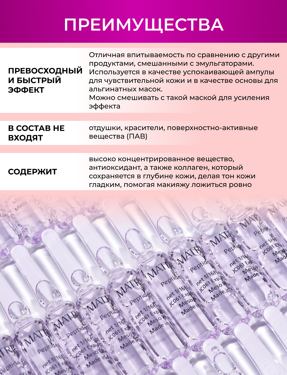 На сегодняшний день товар «MATRIGEN Сыворотка-флюид пептидная / Peptide Fluids 20*2 мл (BBG230)» можно купить с кешбеком в 1 магазине: Яндекс.Маркет