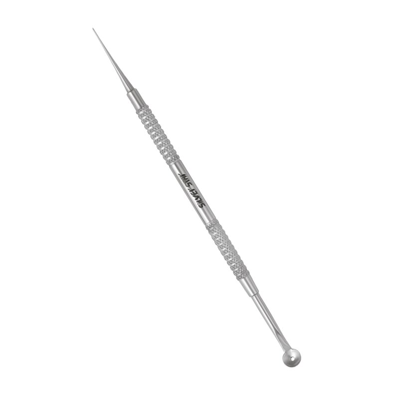 Инструмент с имеет с одной стороны косметологическую ложку Уно, с другой иглу.