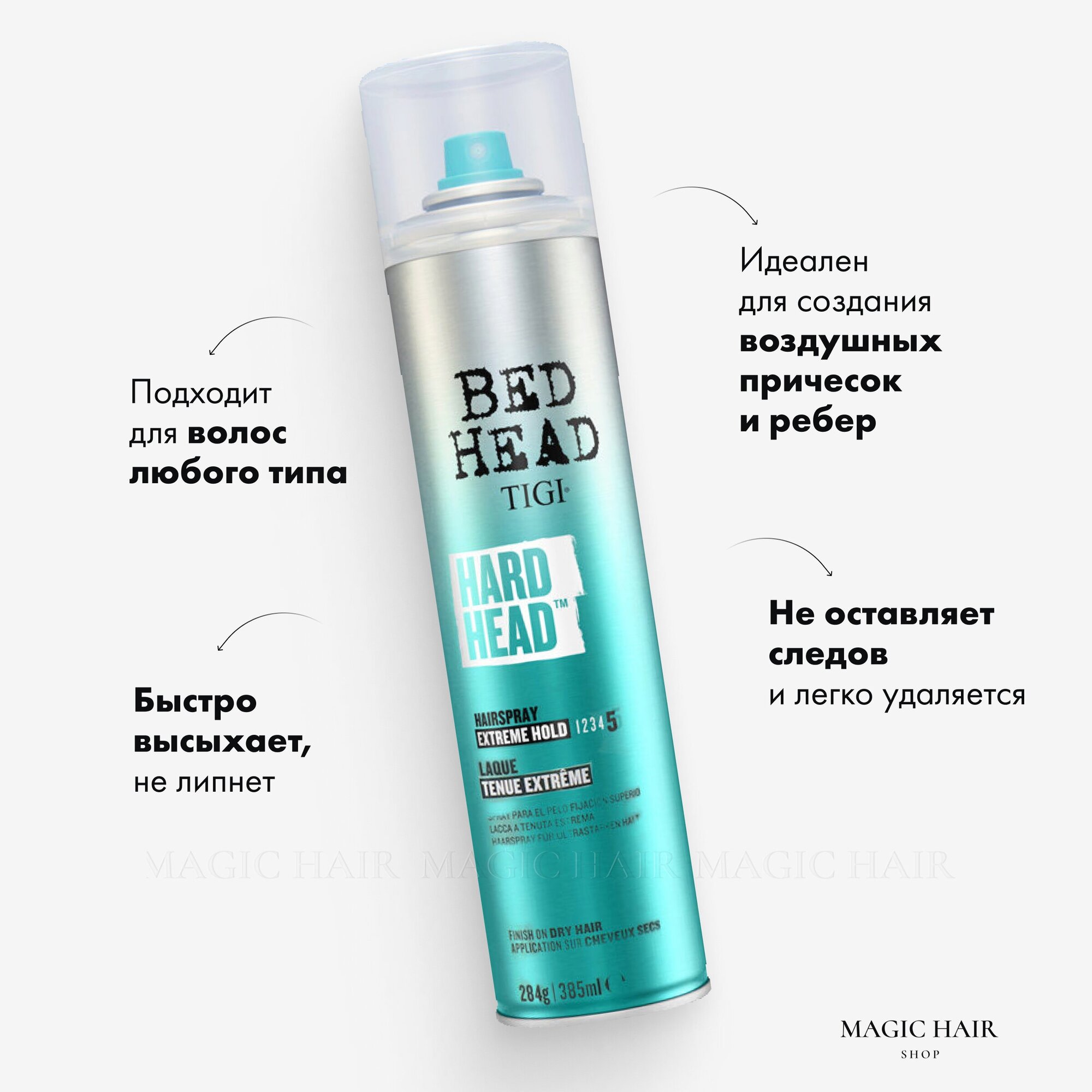 Лак для суперсильной фиксации. Будь смелее! Брось вызов гравитации своей стойкой укладкой. Используй лак для волос Hard Head™ для бескомпромиссно долгой супер сильной фиксации. Мгновенно высыхает, придавая волосам естественный блеск. Универсален: отлично подойдет для волос любого типа и длины.