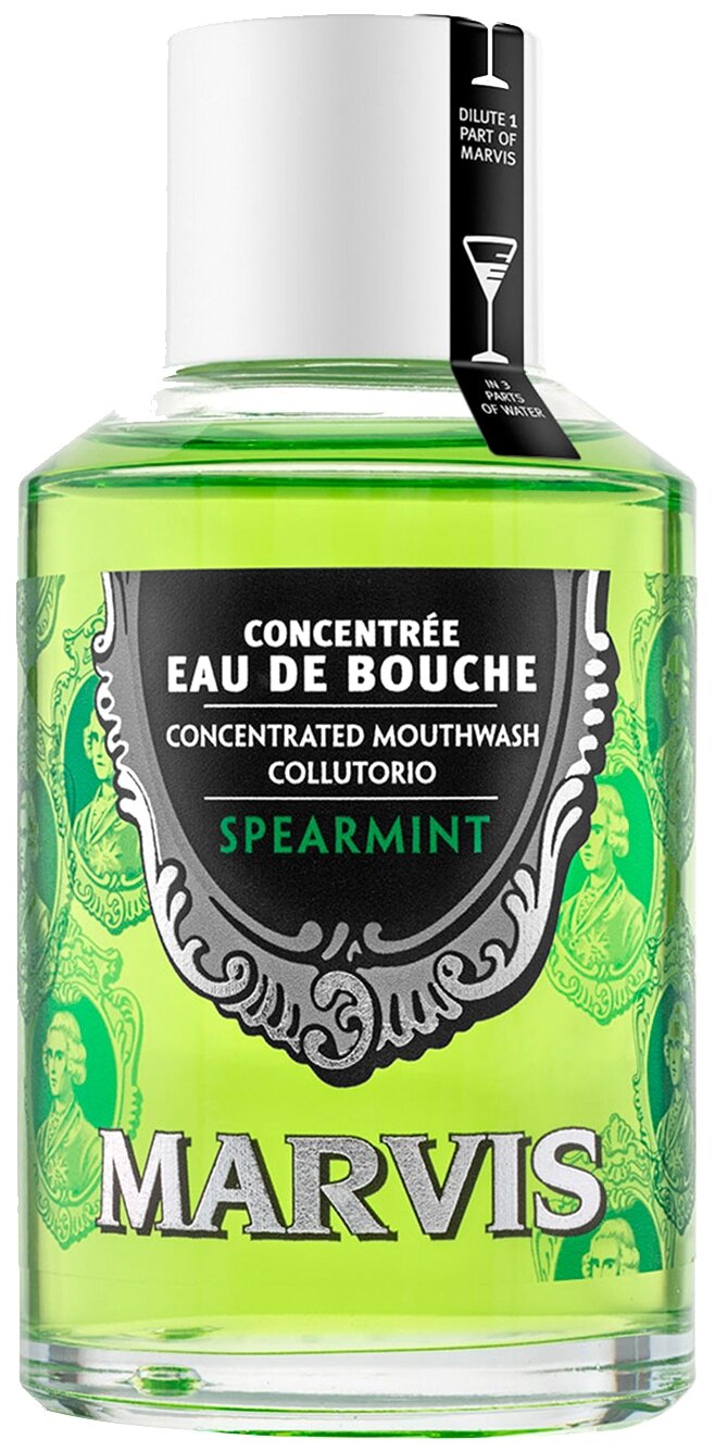 Ополаскиватель Marvis Мята является концентратом, поэтому его следует разбавлять с водой в соотношении 1:4.