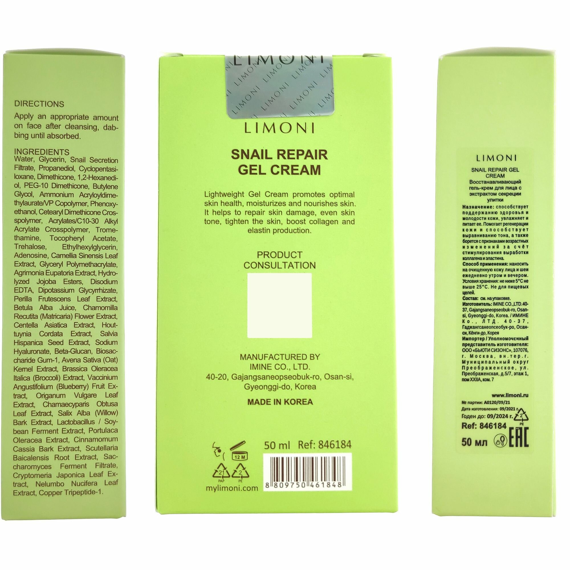 LIMONI Гель-крем восстанавливающий для лица с экстрактом секреции улитки / Snail Repair Gel Cream 50 мл (846184)