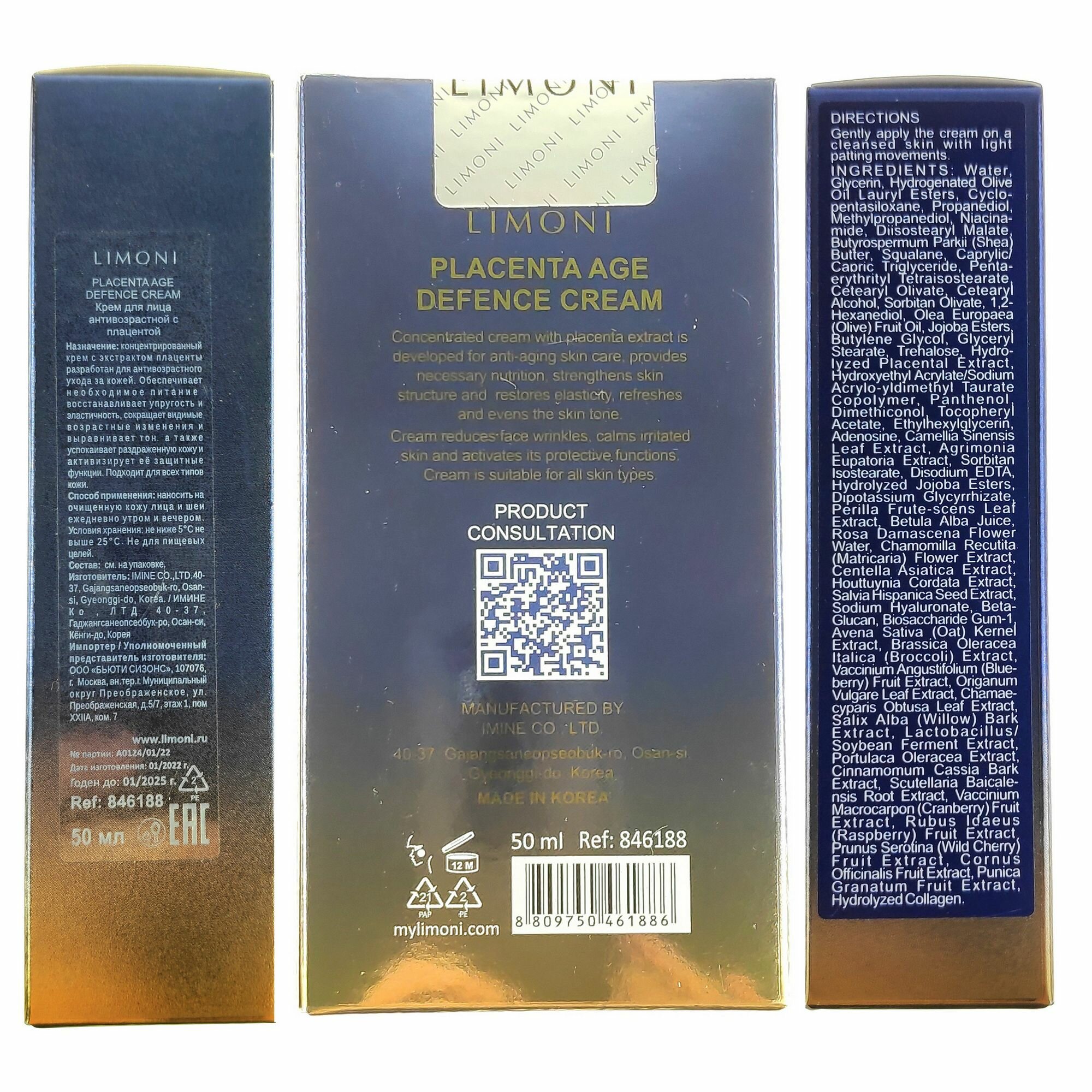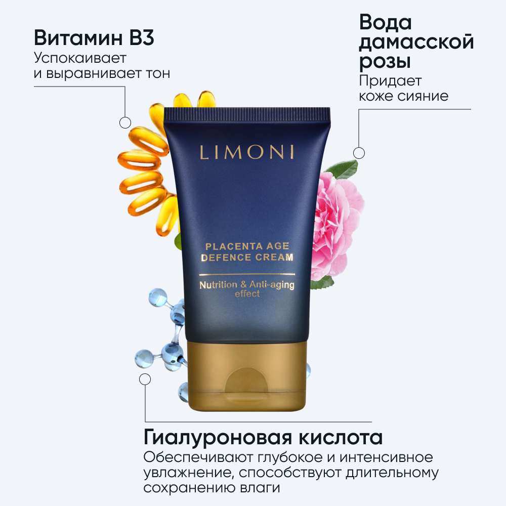 LIMONI Крем для лица антивозрастной с плацентой / PLACENTA AGE DEFENCE CREAM 50 мл (846188)