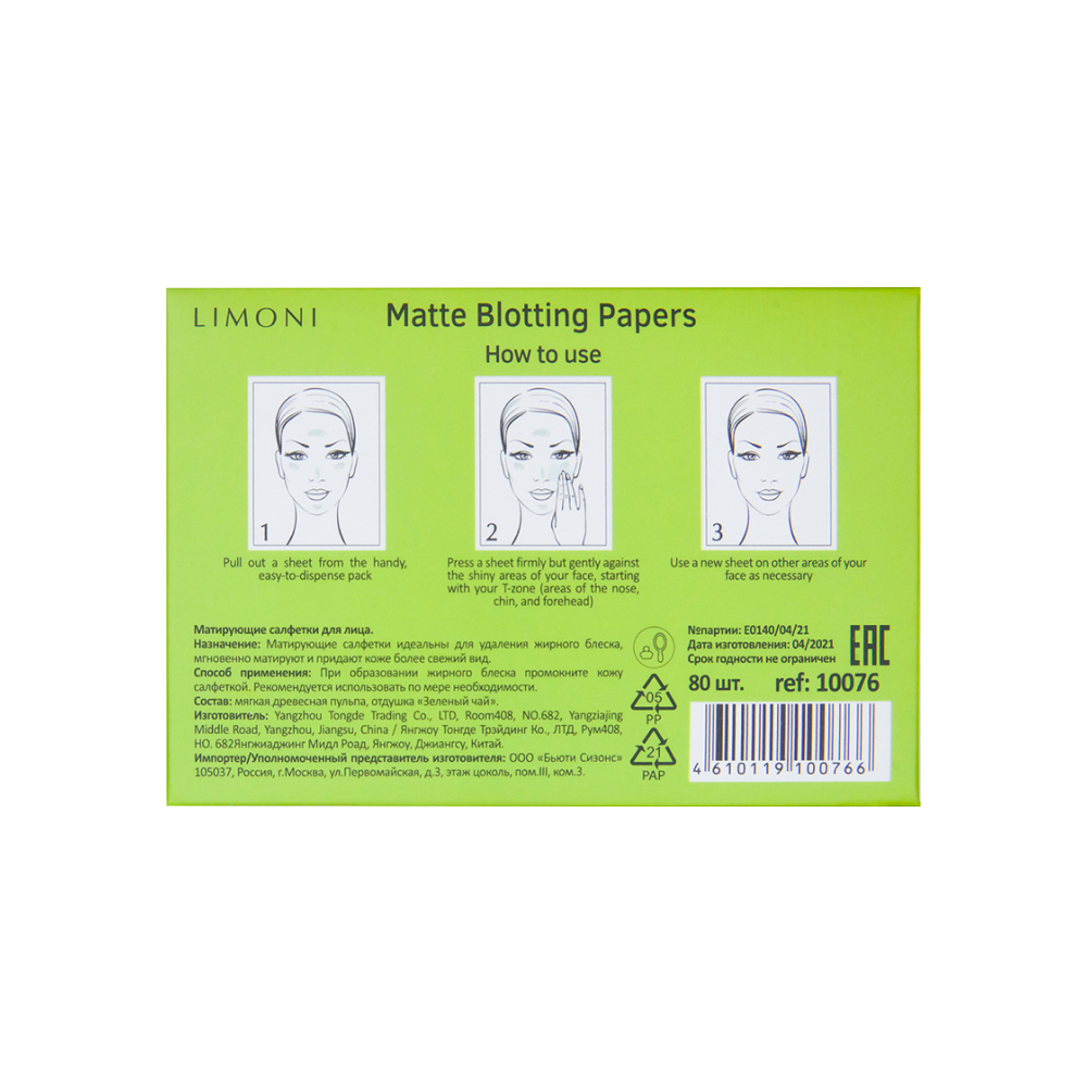 | Полное наименование | Limoni Matte Blotting Papers Pink 80 шт |