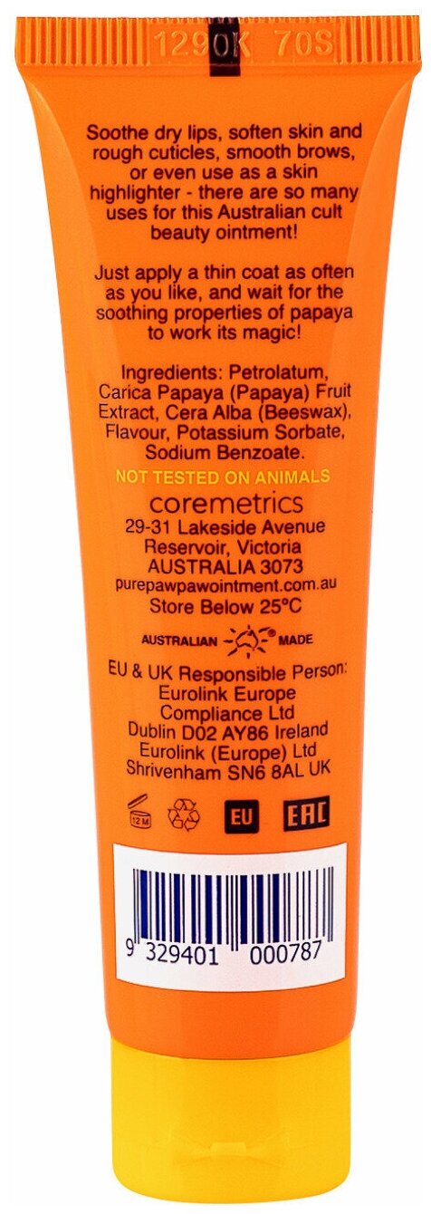 | Состав | petrolatum, carica papayas (fermented) fruit extract, cera alba, potassium sorbate, sodium benzoate, flavour. |