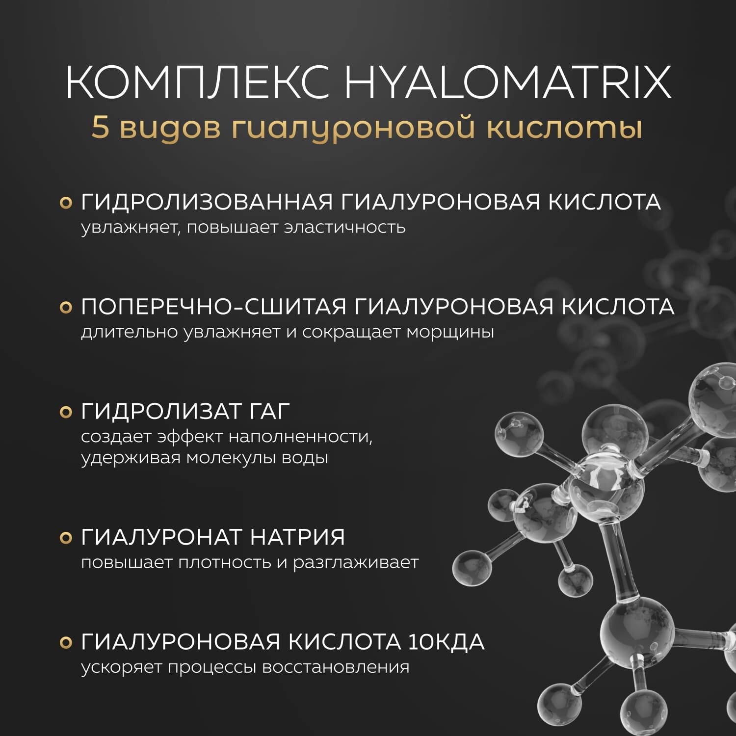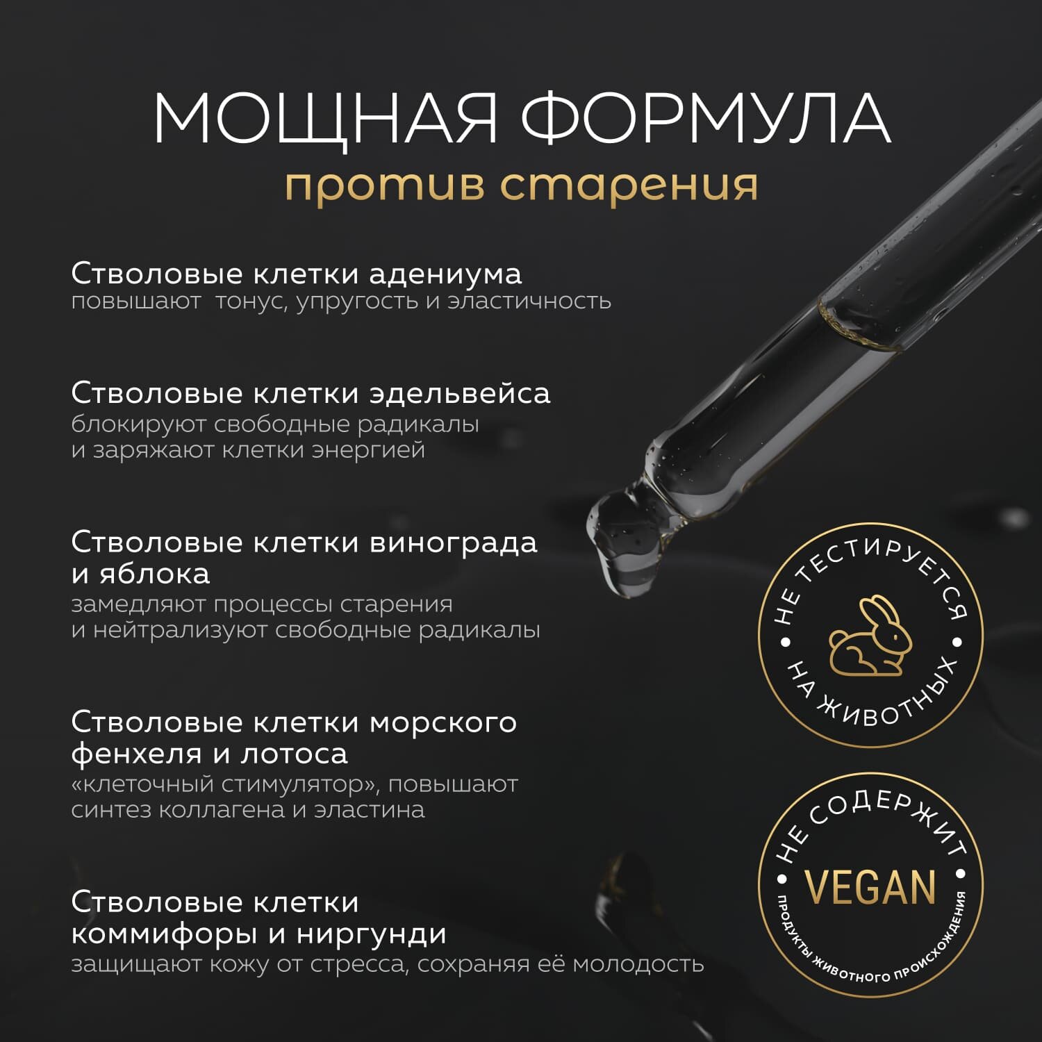 | Состав | Омолаживающая сыворотка для лица, содержащая матриксил, пять видов гиалуроновой кислоты и меристемальные клеточные культуры растений, оказывает всеобъемлющее действие, повышает энергетическую активность, корректируя признаки увядания. |