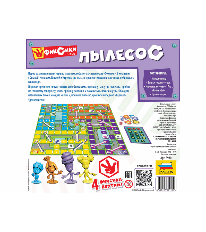 Перед вами настольная игра по мотивам любимого мультсериала «Фиксики». В компании с Симкой, Ноликом, Шпулей и Игреком вы классно проведете время и научитесь действовать в команде.