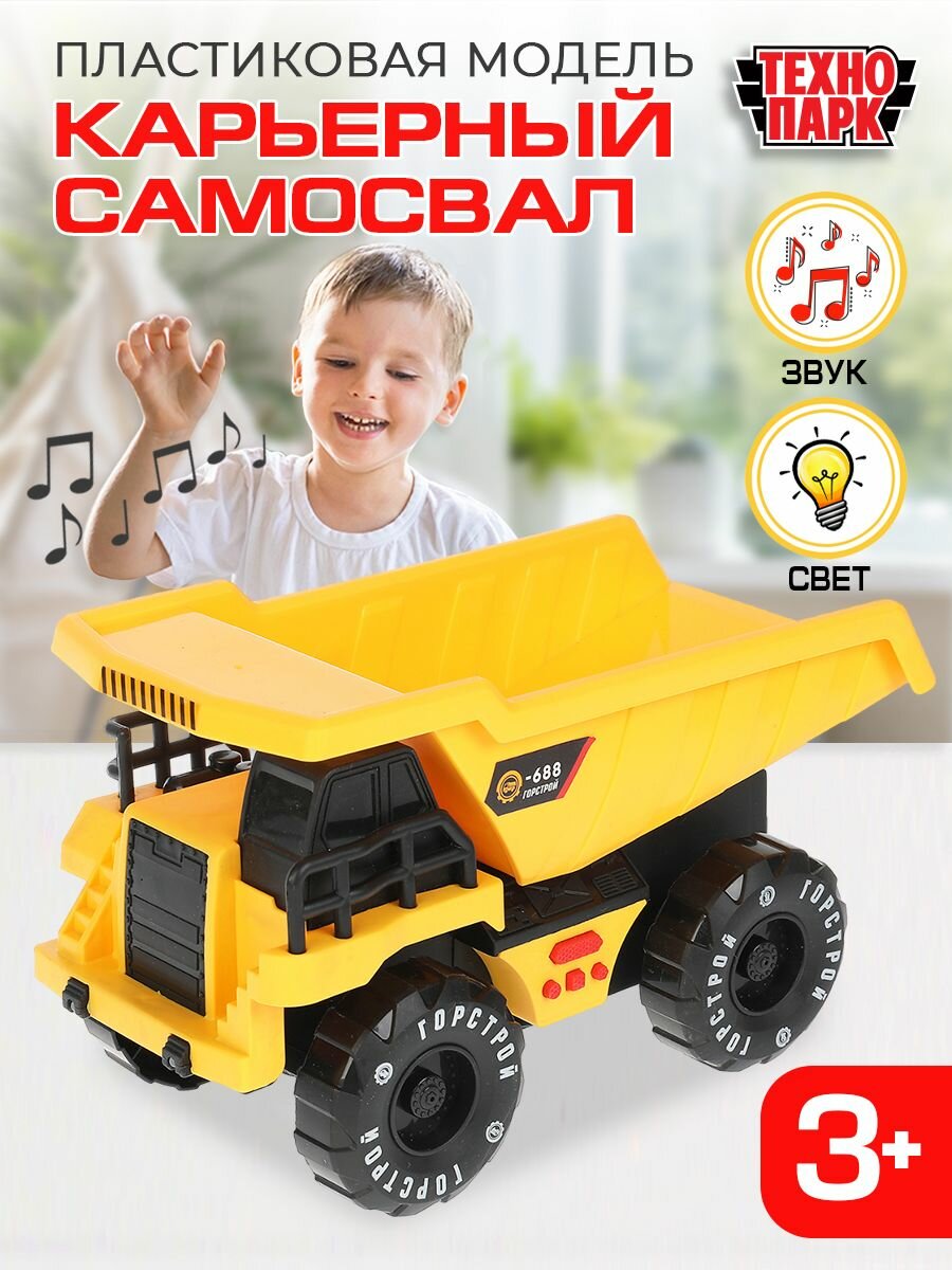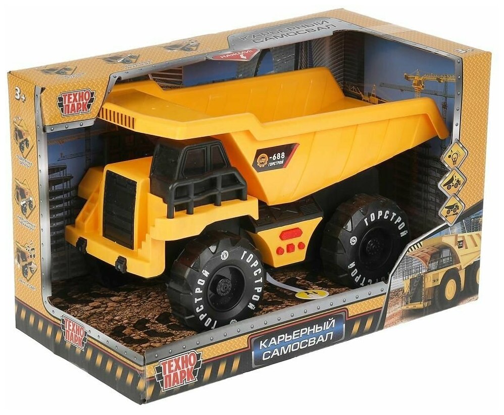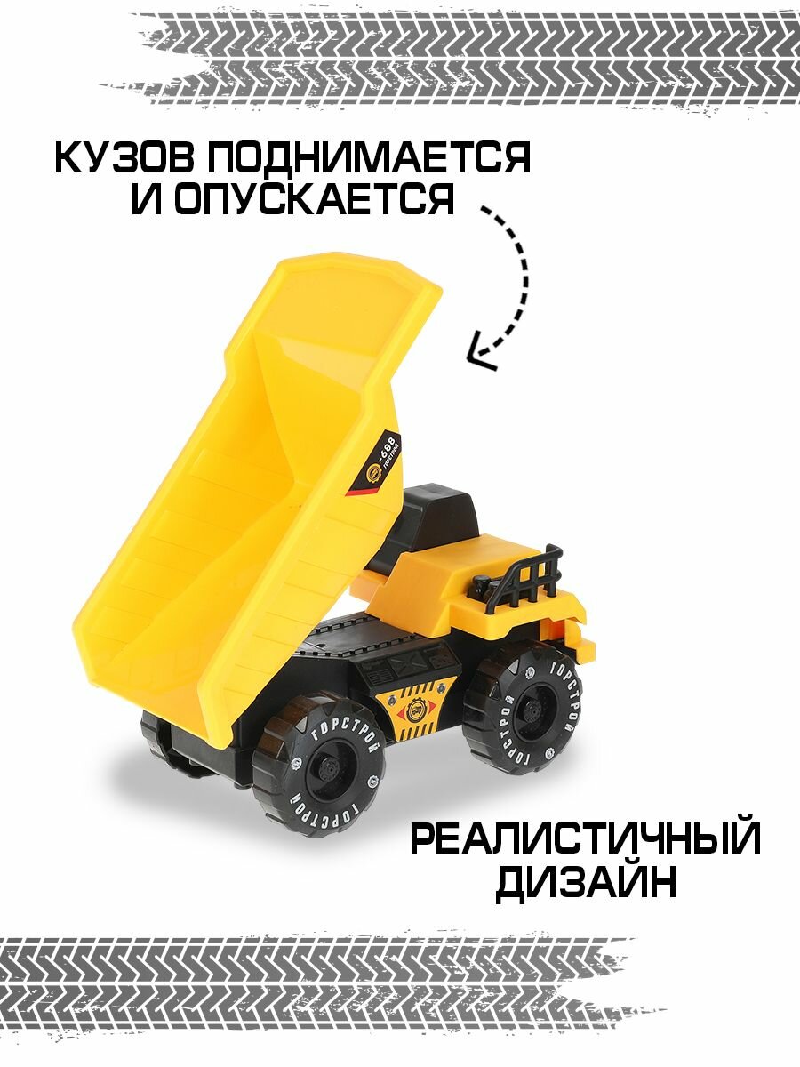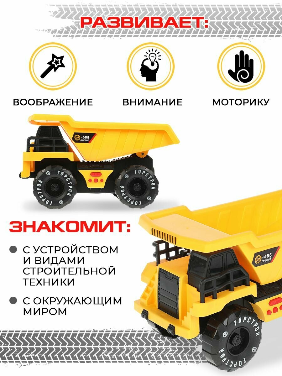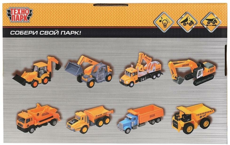 Игра с инерционной машинкой ТМ «Технопарк» знакомит юного автолюбителя с видами спецтехники, а также тренирует: