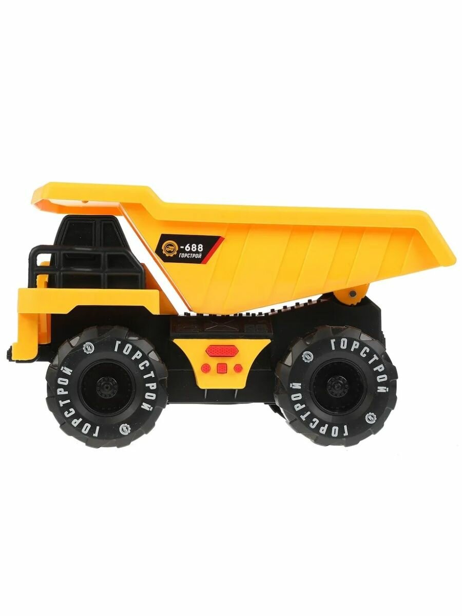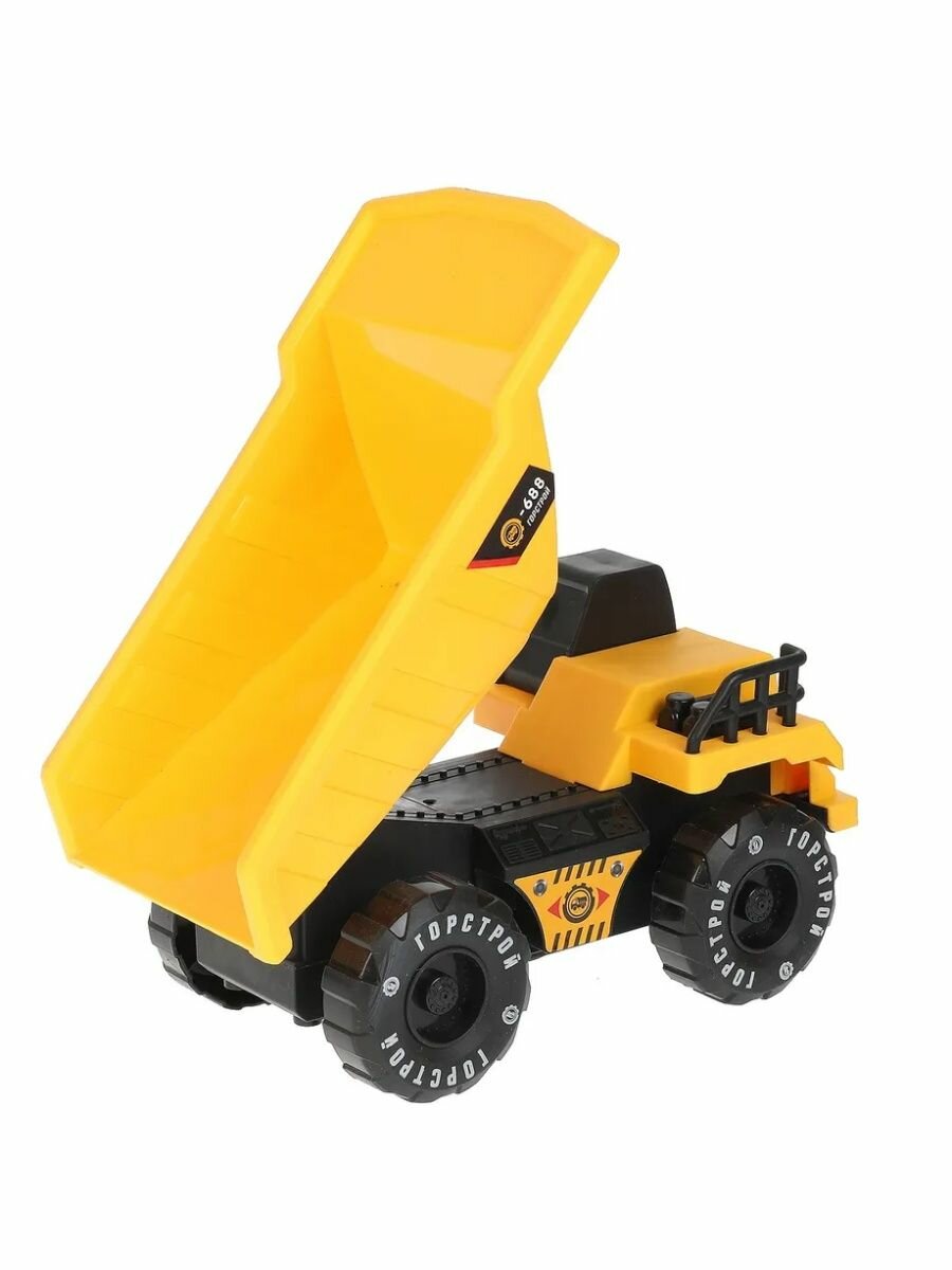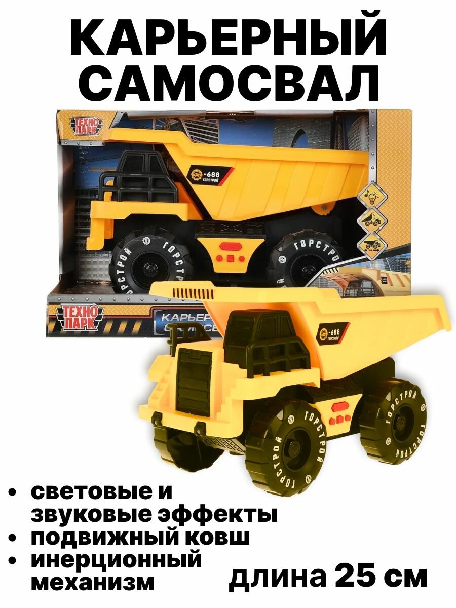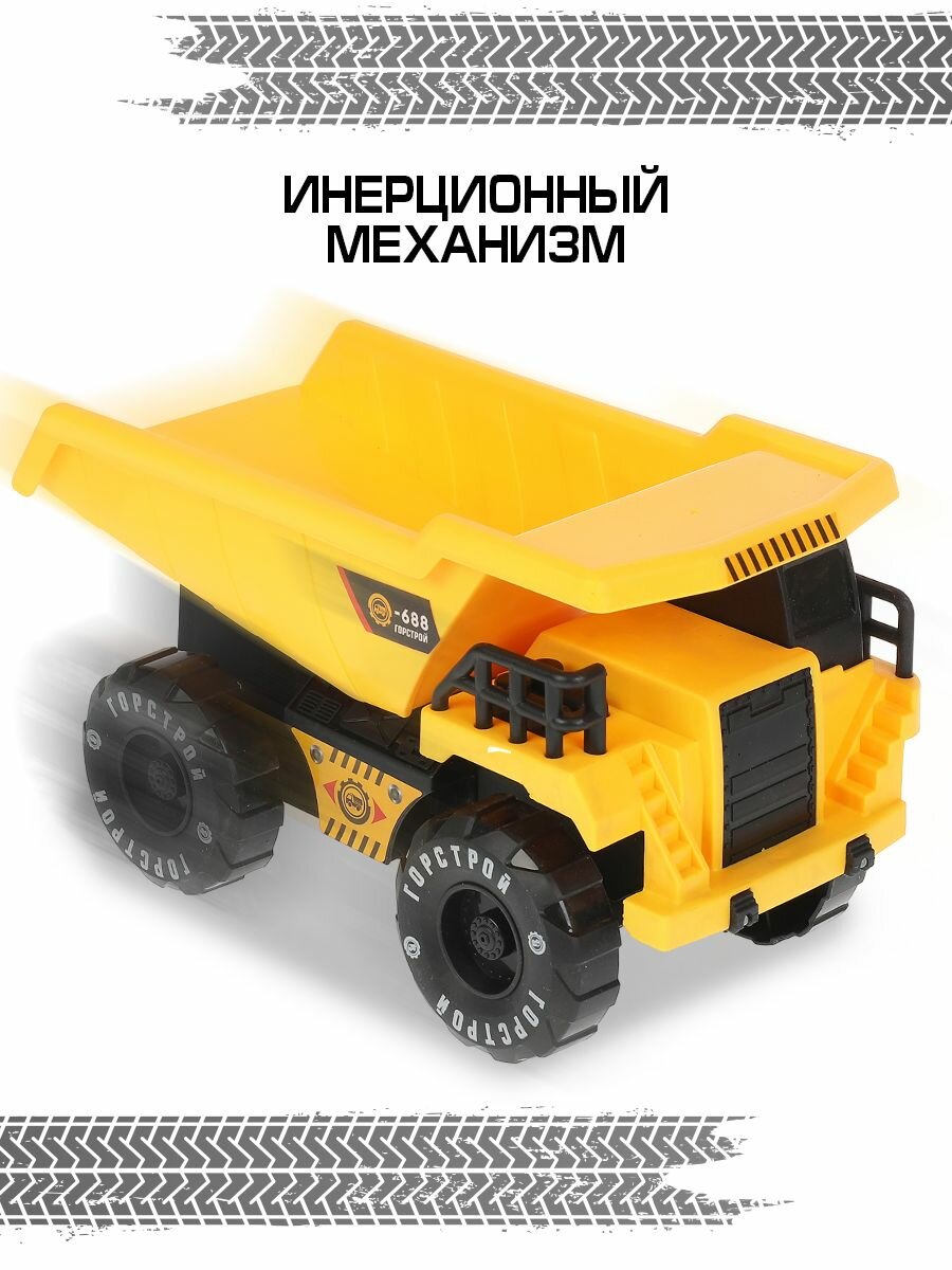 Игра с инерционной машинкой ТМ «Технопарк» знакомит юного автолюбителя с видами спецтехники, а также тренирует: