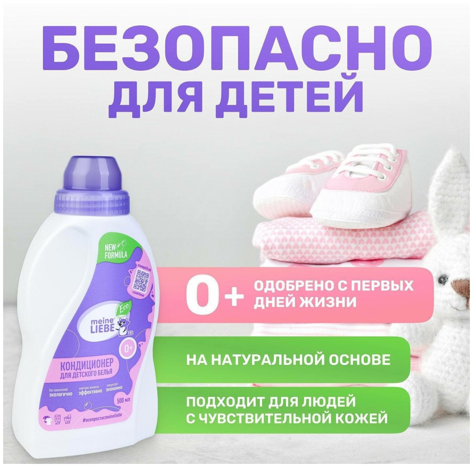 Кондиционер подходит для всех типов тканей, для машинной и ручной стирки. Быстро и без остатка выполаскивается из ткани. Всего 5мл кондиционера придадут особую мягкость вещам Вашего малыша. Без отдушек, без красителей. Безопасен для чувствительной кожи детей с первых дней жизни. Облегчает глажение, оказывает антистатический эффект. Сохраняет цвет и структуру волокон, предотвращает потерю формы одежды даже после многократных стирок.