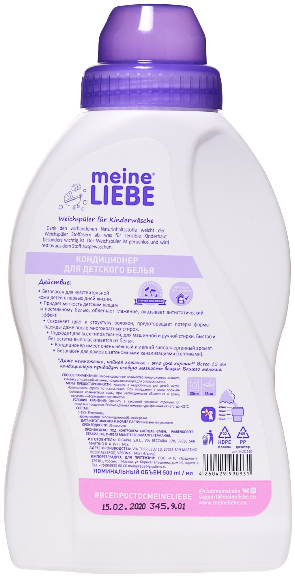 Meine Liebe Кондиционер для детского белья 500мл ML31186