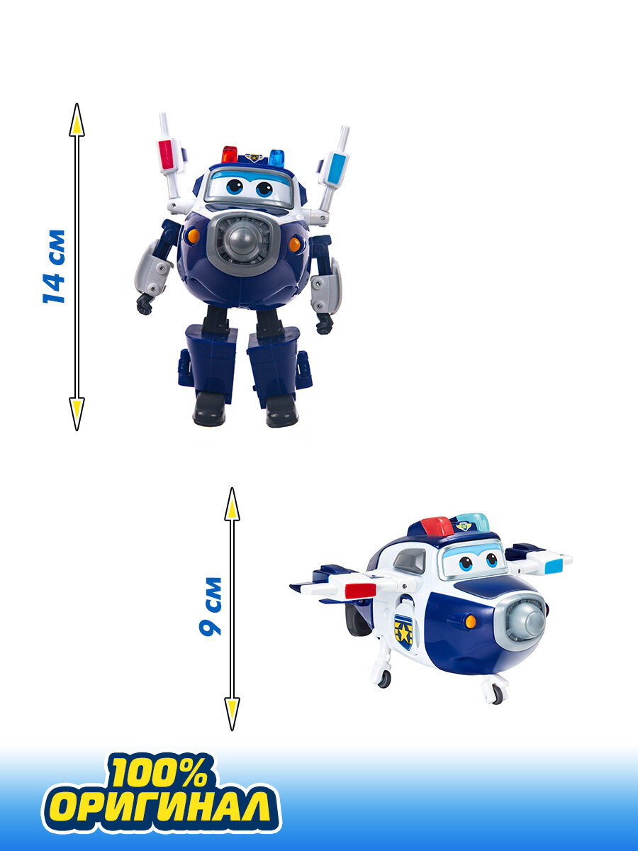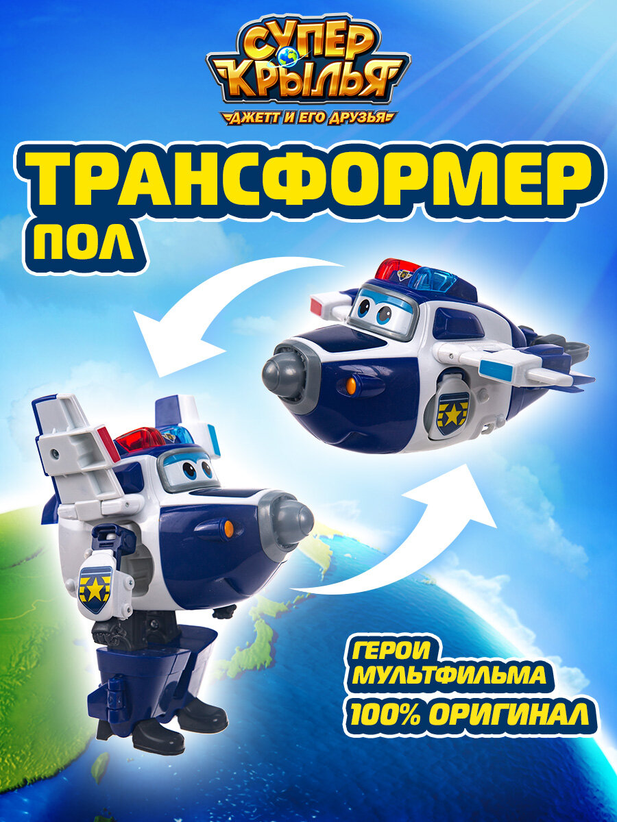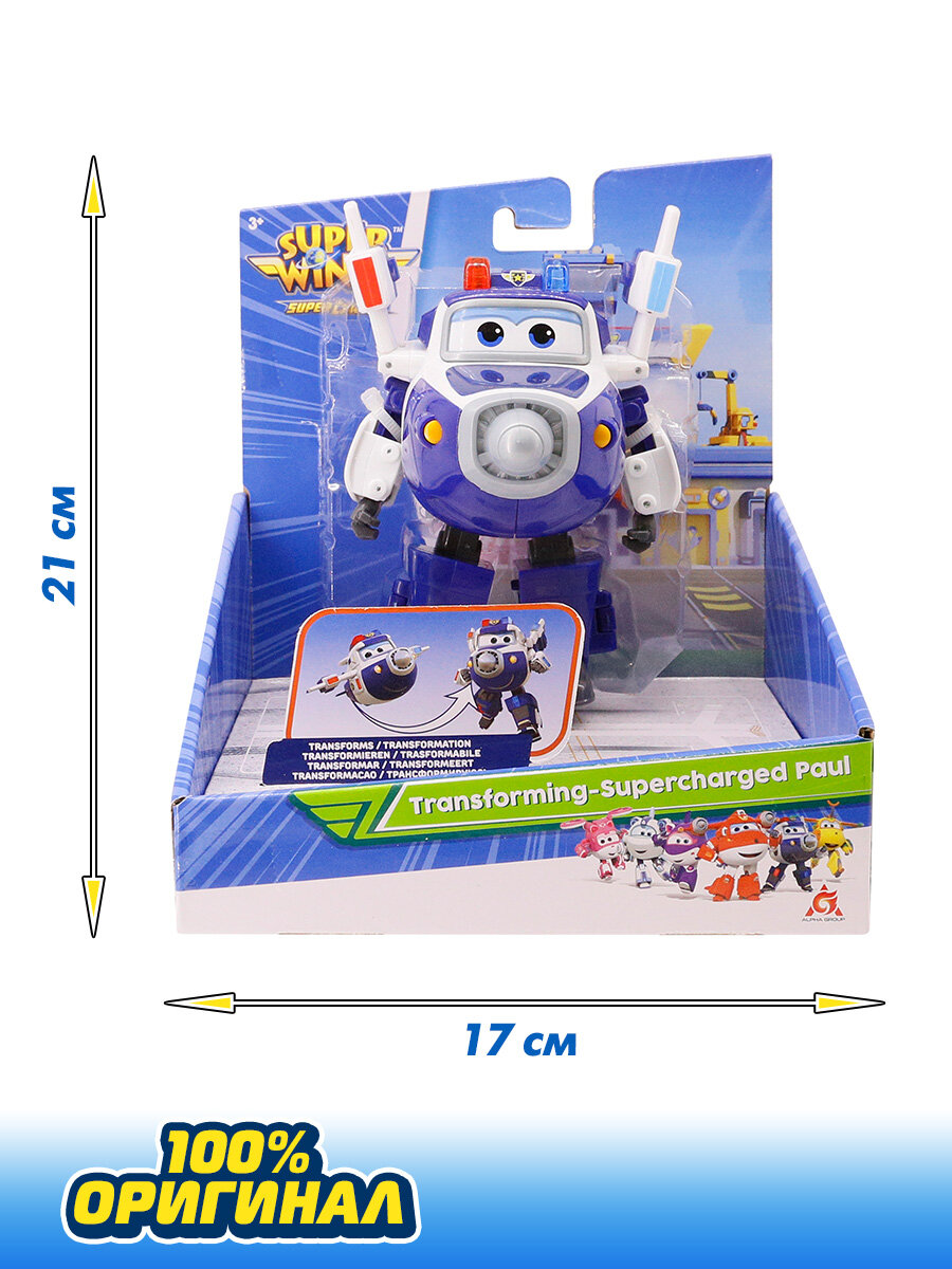 Суперзаряженный Пол - один из главных героев команды Супер Крыльев! В 4м сезоне мультфильма Супер Крылья - Подзарядка полицейские навыки Пола, которые он всегда использовал для защиты мира, усиливаются, поскольку он получает два новых мощных инструмента: многофункциональный щит и мощную дубинку. Трансформируй Пола из самолета в робота всего за 10 простых шагов и почувствуй себя членом команды Супер Крыльев! Высота робота 12.5 см, трансформация из робота в самолет всего за 10 итераций. Super wings - мы доставляем!