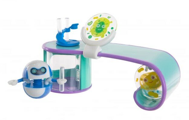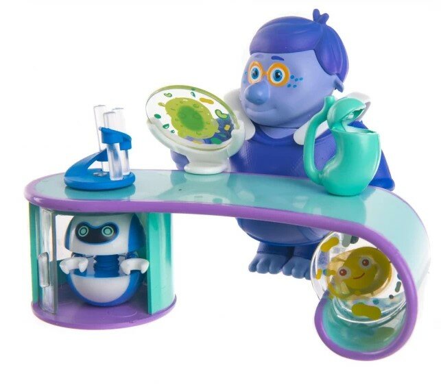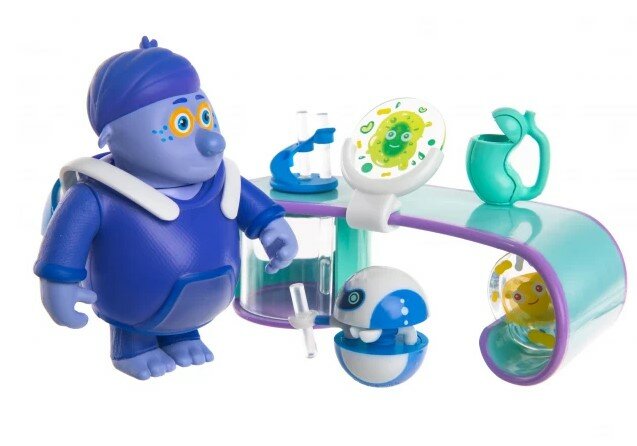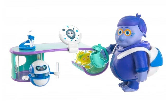 Игровые элементы: фигурка Блюма, микроскоп со сменными стеклами, поворотный штатив со съемными пробирками, робот- помощник, отсек для робота за сдвижной дверцей, рюкзак Блюма с откидной крышкой, кувшин-поилка для грустной воды.
