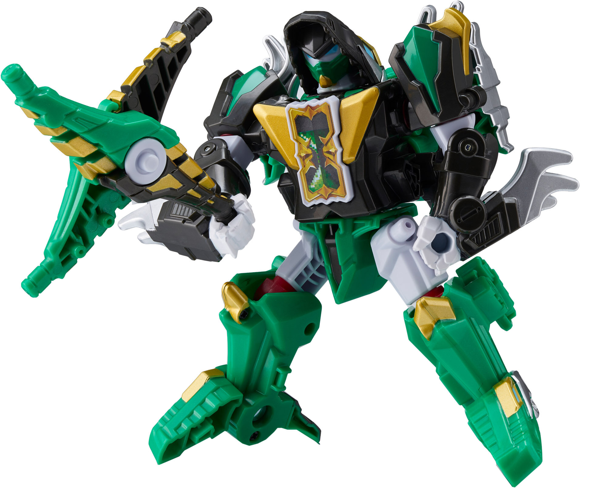 Трансформер состоит из 15 съемных деталей-блоков и инструкции по сборке. Имеет 2 режима трансформации: может быть, как роботом воином, так и трансформироваться в двух роботов велоцирапторов. В комплект набора входит метательное оружие героя, которое также является дополнительной игрушкой спиннером.