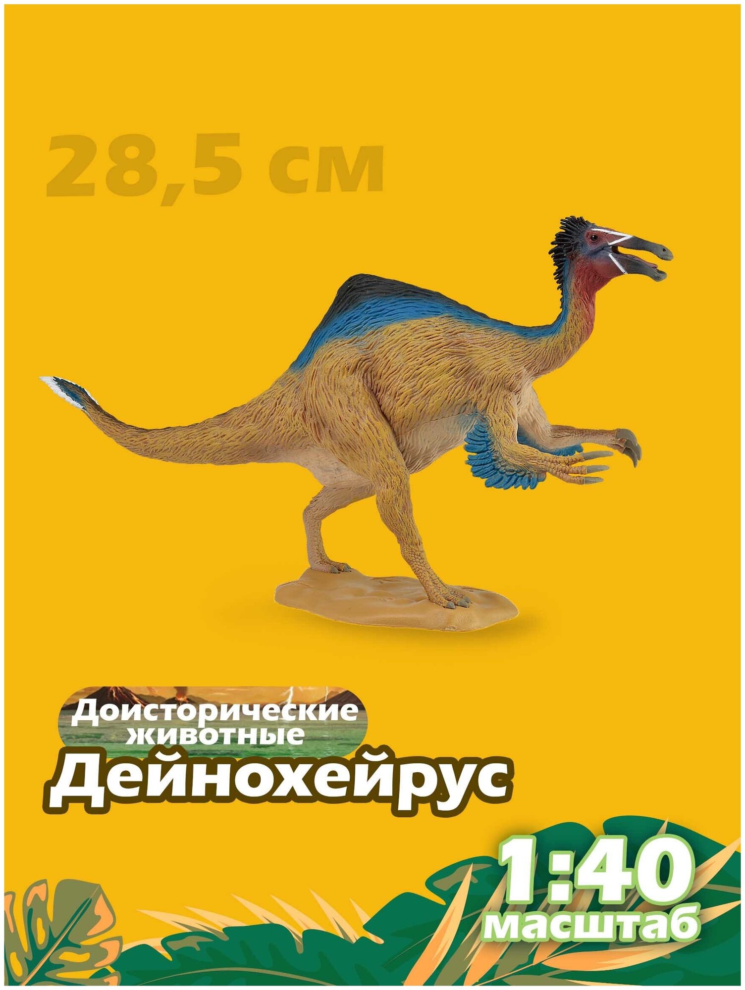 Развивающая игрушка - фигурка "Дейнохейрус " в масштабе 1:40 представляет детализированную копию настоящего доисторического динозавра. Игровые фигурки животных Коллекта являются точной копией настоящих животных. В создании этих игрушек принимают участие известные скульптора и палеонтологи. Благодаря качественным сертифицированным материалам их можно использовать как для активных детских игр ребёнка, так и для коллекционирования. Данная игрушка развивает внимание, логическое и образное мышление, фантазию малыша, а также знакомит ребенка с миром доисторических животных. С 2006 года компания сотрудничает с Королевской организацией по защите животных. Для детей от 3 лет.