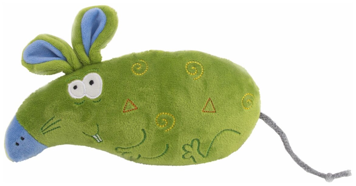Крыса Бука бренда Баттон Блю изготовлена из мягкого плюшевого материала ярко-зелёного цвета. Нос и уши имеют вставки голубого цвета. Мордочка и лапки крысы вышиты нитками, также по всему телу разноцветными нитками вышиты узоры и геометрические элементы. Тонкий хвост выполнен из длинного шнурка. Крыска имеет забавный и немного чудаковатый вид и обязательно рассмешит и взрослого, и ребёнка. Игрушка может использоваться как подушка или элемент декора, размер 25 см (без учёта хвоста). Безопасность Все мягкие игрушки, посвященные тематике нового года, созданы с любовью и заботой о здоровье! Для их производства применяются качественный плюш, текстиль, вышивка. Все материалы сертифицированы и прошли строгий контроль качества. Игрушки являются гипоаллергенными.