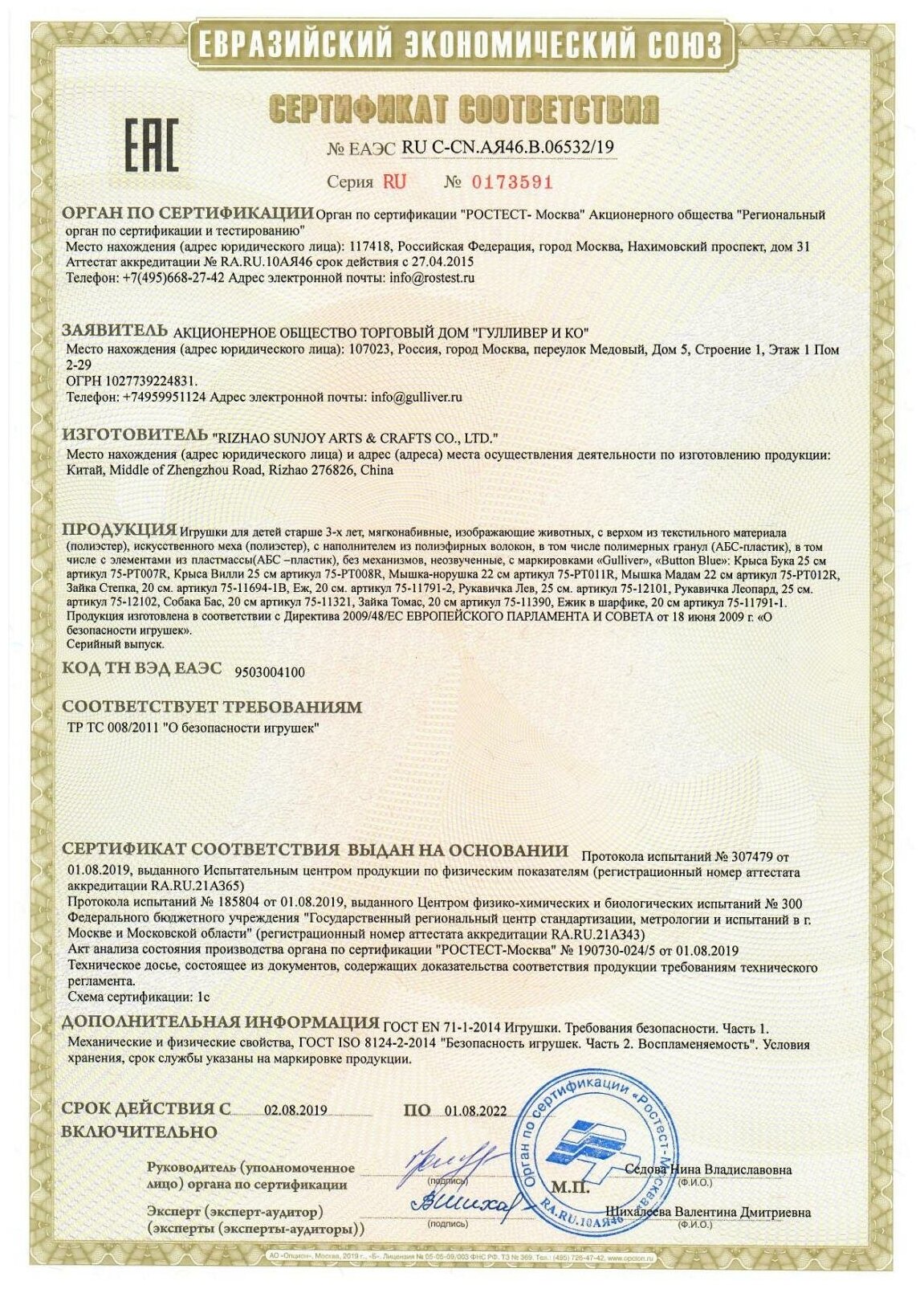 Тип товара: Животные мягкие