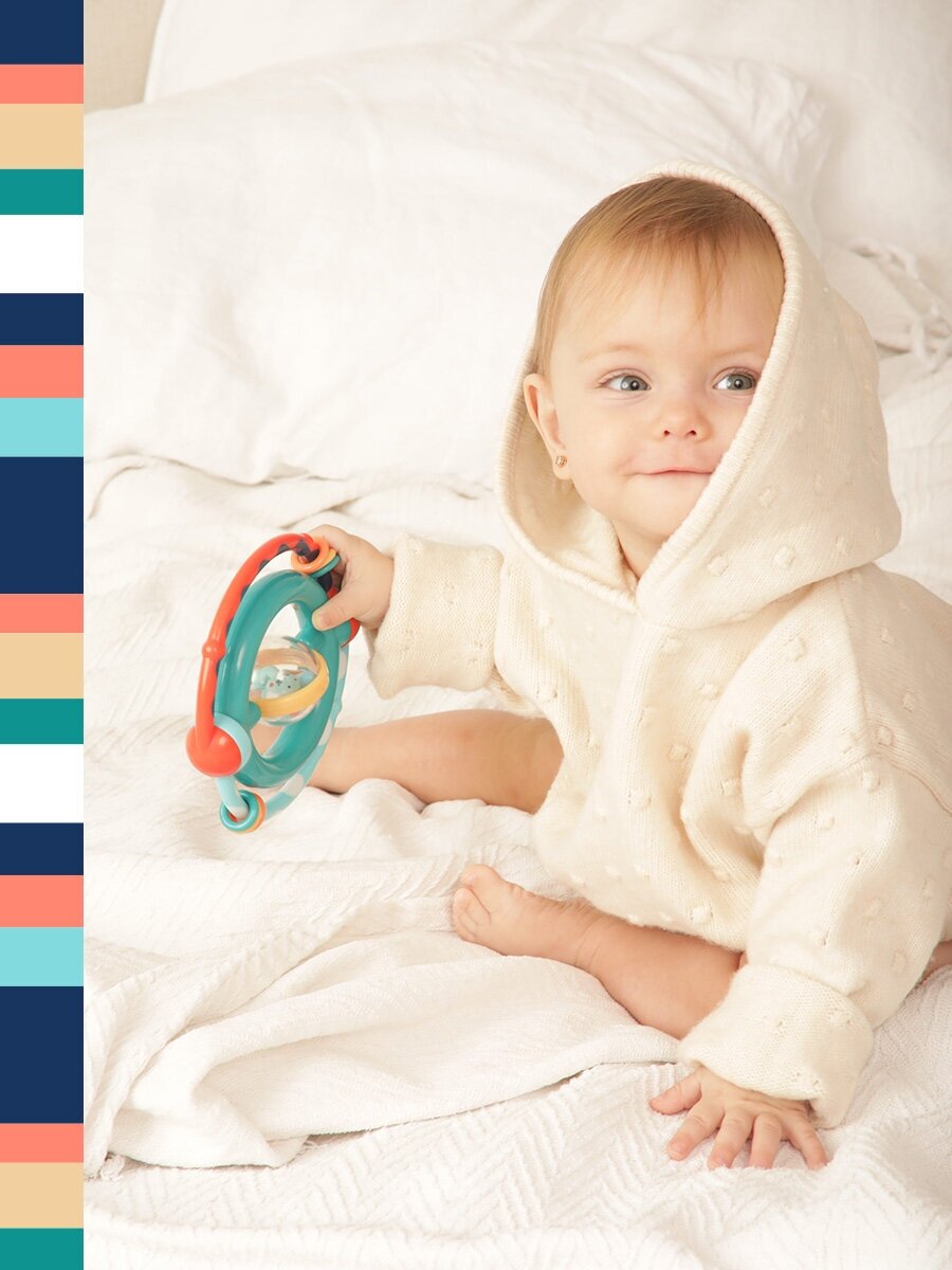 Погремушка «Сфера» не только отвлекает внимание, но и способствует стимулированию следующих навыков у мальчиков и девочек: