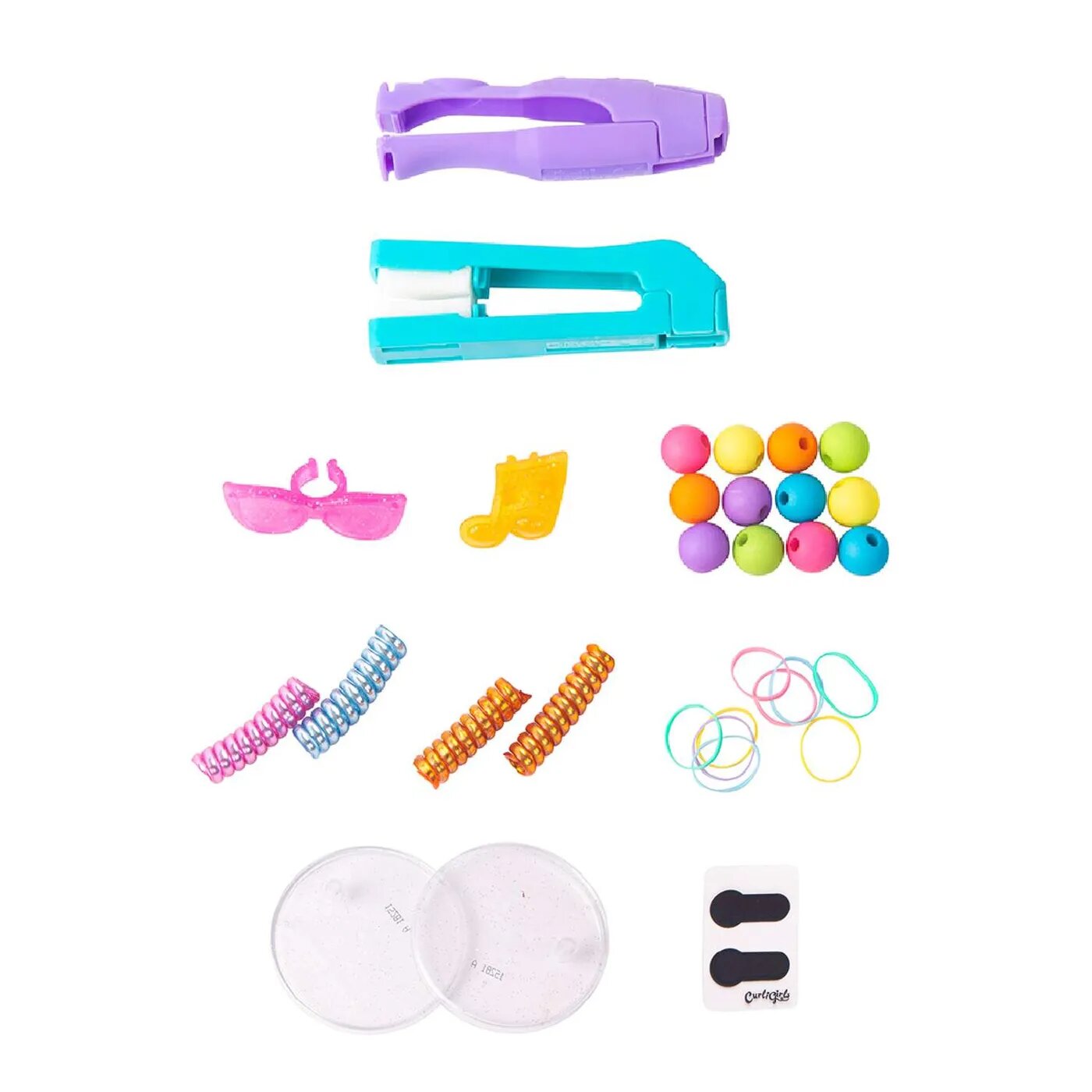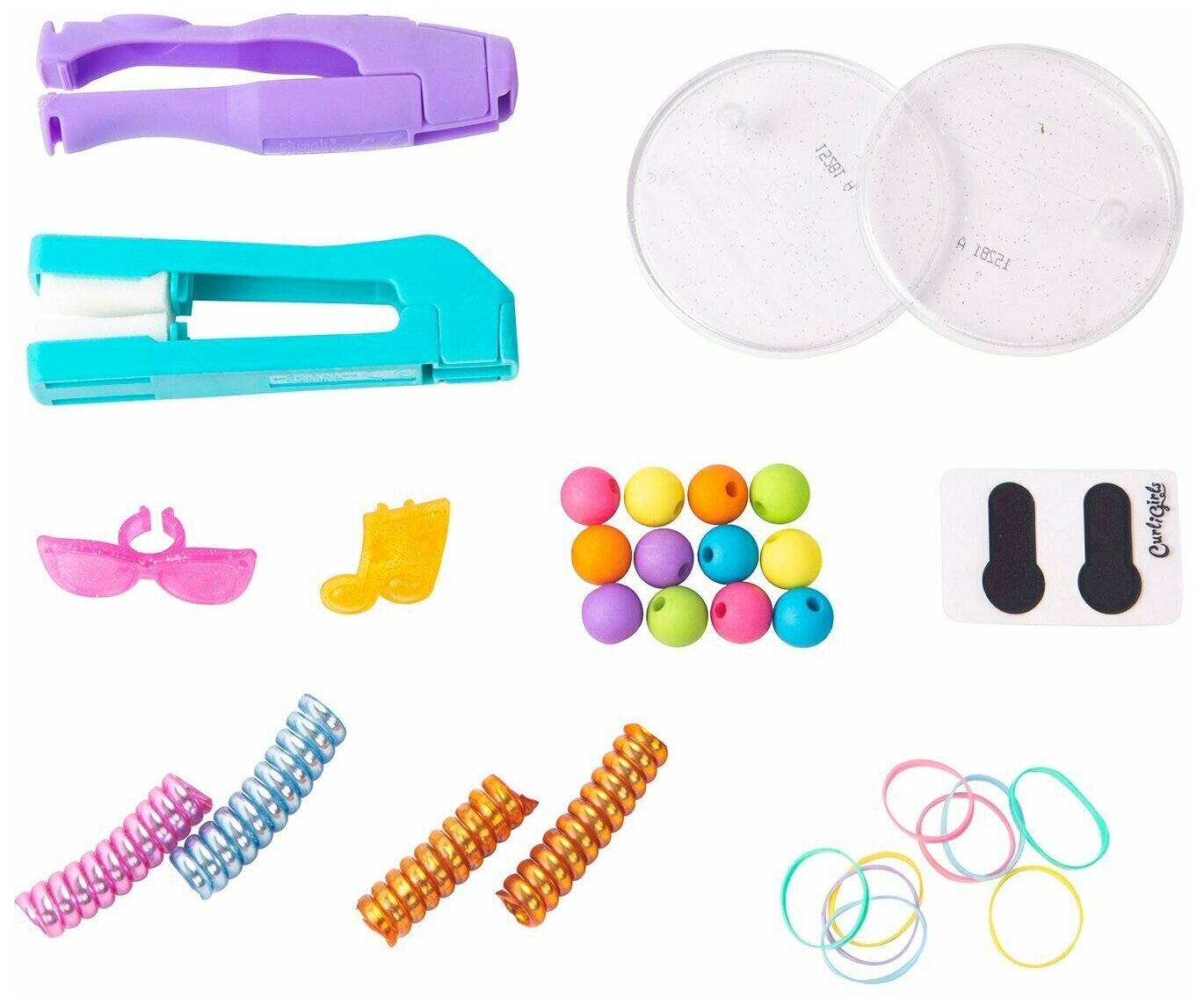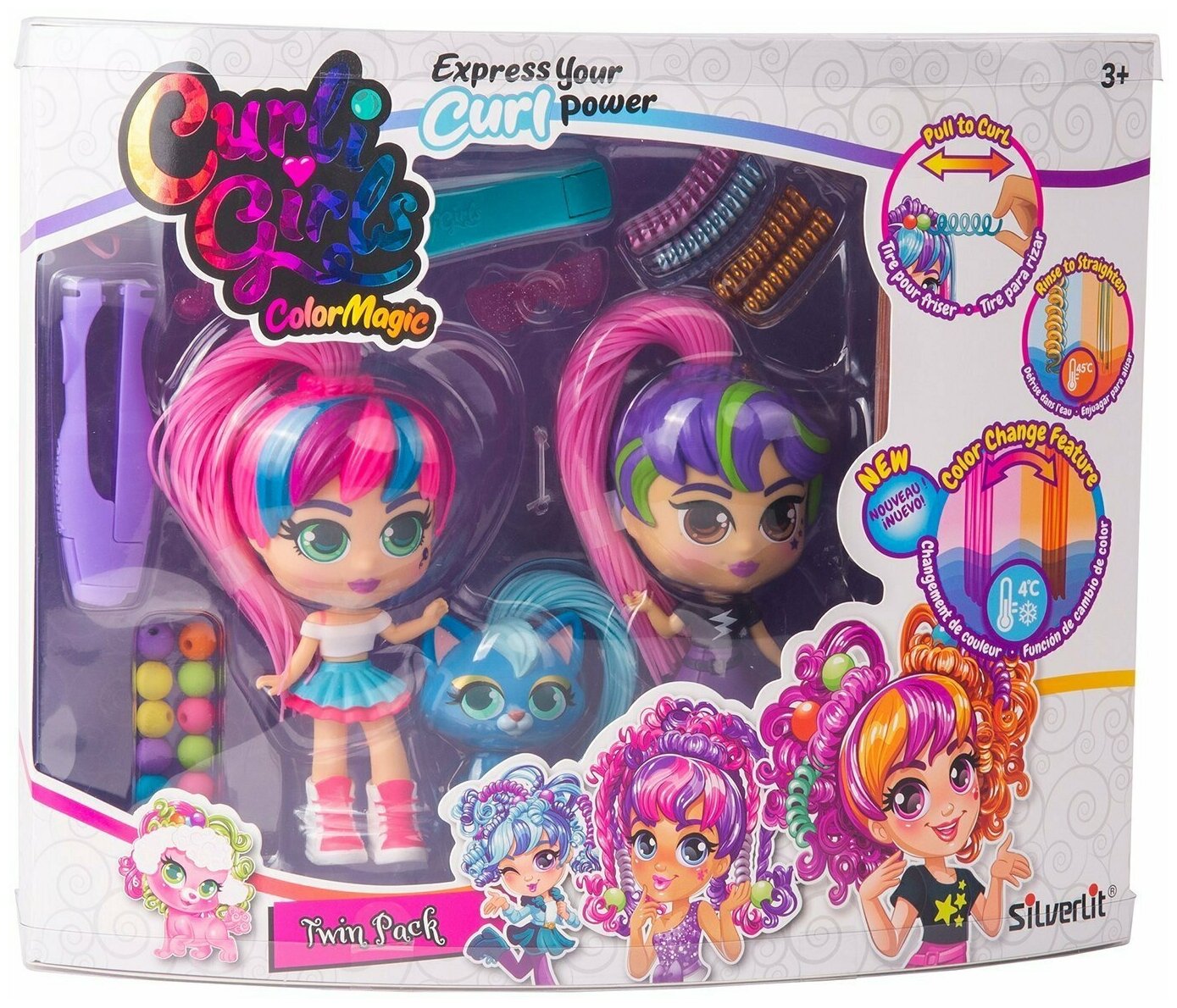Игрушка из пластмассы, в наборе, с маркировкой “Silverlit”, “Curli Girls”. В набор входят: кукла – 2 шт., фигурка питомца - 1 шт., зажим для завивки – 1 шт., выпрямитель - 1 шт., индикатор температуры – 1 шт., бусинки – 12 шт., заколка – 2 шт., спиральки для волос - 4 шт., резинки для прядей - 9 шт., подставка для куклы – 2 шт., инструкция – 1 шт.
