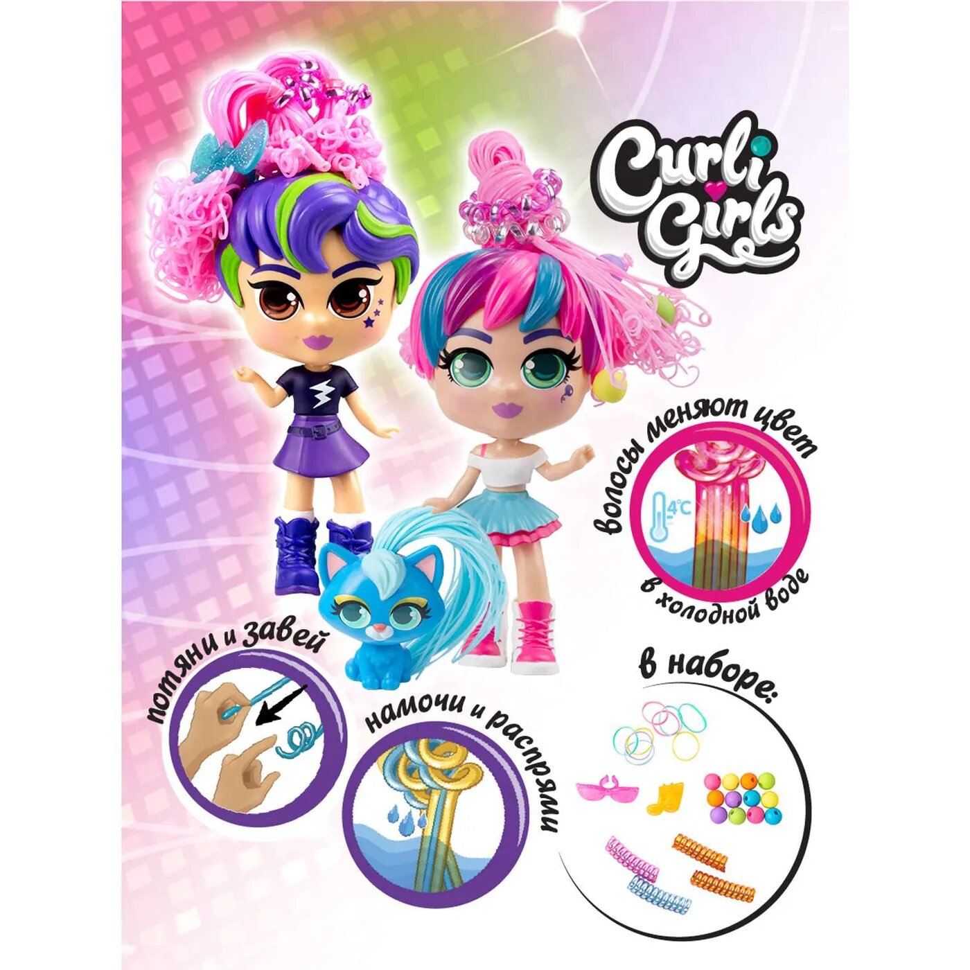 Curli Girls подружки Чарли и Бейли с питомцем (голубым котенком) 82079_1