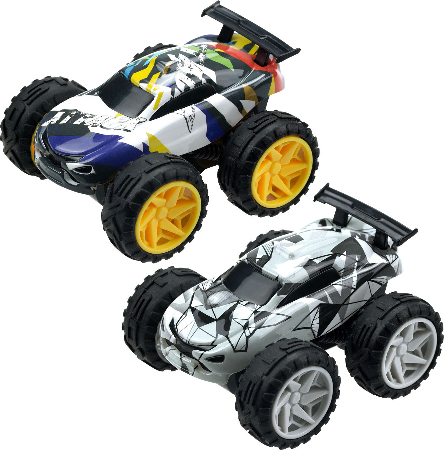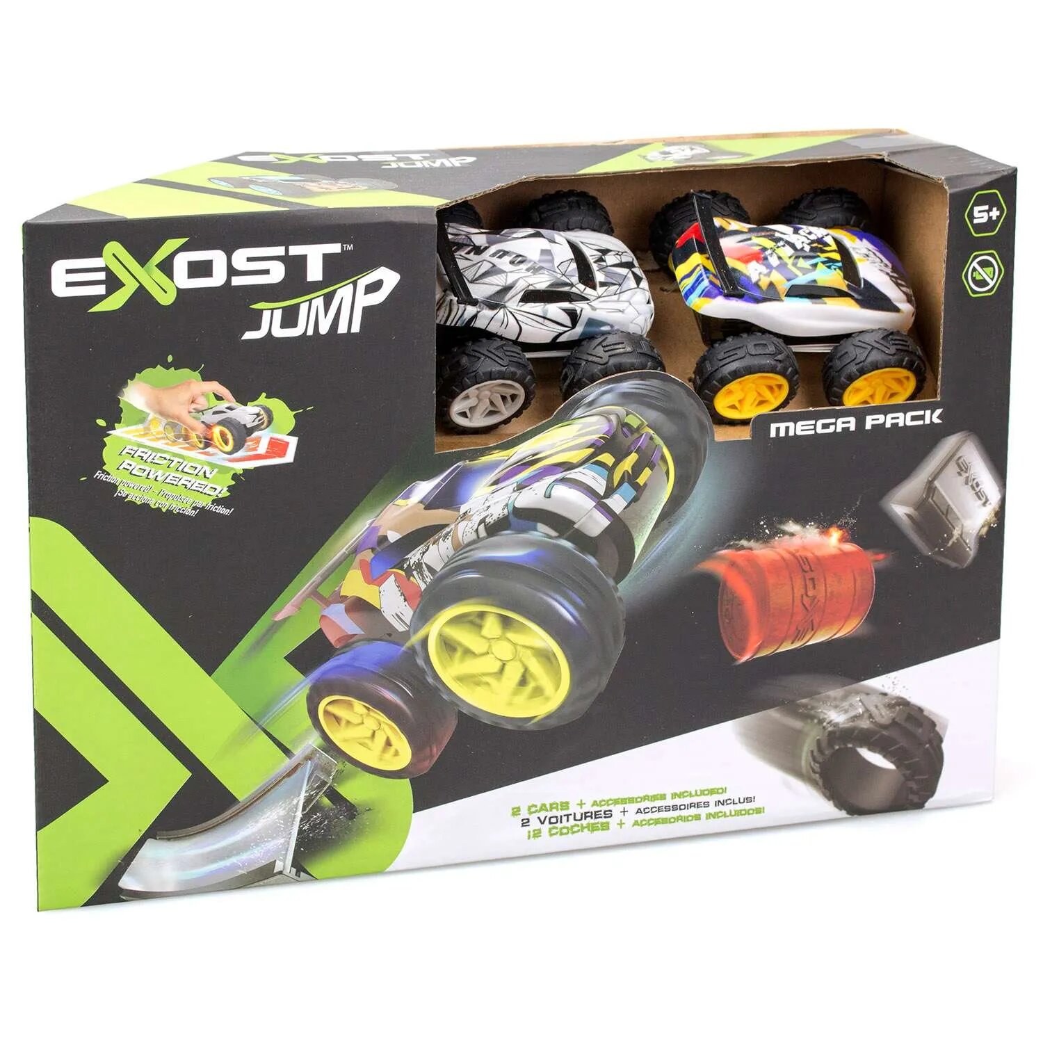 Exost Jump - это иннерционные трюковые машинки. Построй свою полосу препятствий и придумывай самые невероятные трюки! В наборе 2 машинки,1 регулируемая рампа, 2 бочки, 2 покрышки и 2 ограждения, а также рампа, которую можно легко сделать из упаковки, следуя инструкциям.