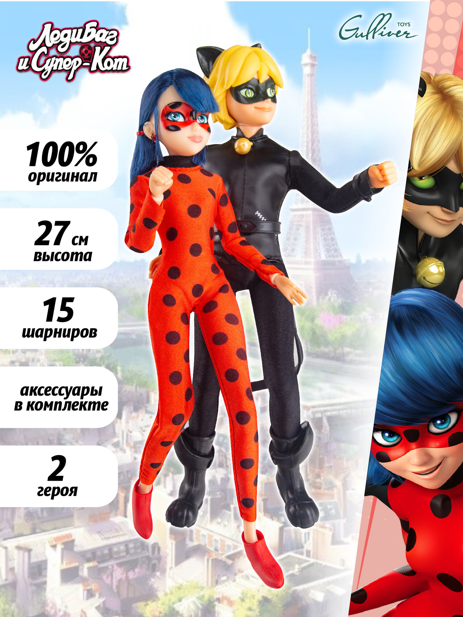 Хочешь куклу по мотивам мультсериала "Леди Баг и Супер-Кот", но не можешь решить, кого из главных героев выбрать? Это не проблема! В игровом наборе "Леди Баг и Супер-кот: миссия выполнена" ты найдёшь сразу и Леди Баг, и Супер-Кота! Полноразмерные куклы высотой 25-27 сантиметров с 15 точками артикуляции сделают игру незабываемой! Придавай разные позы, придумывай новые сражения и приключения, используй аксессуары, идущие в наборе, чтобы было ещё интереснее и увлекательнее! В наборе: кукла (25-27 см высотой) - 2шт. (Леди Баг и Супер-Кот); аксессуар для куклы “yo-yo Леди Баг" - 1шт.; аксессуар для куклы "боевое оружие Супер-Кота" - 1шт.