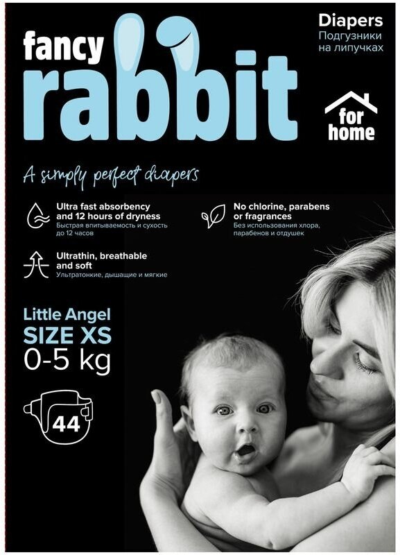 Fancy Rabbit for home Подгузники на липучках 0-5 кг XS 44 шт FRH_44_P_XS05 (размер: 1/NB (2-5 кг))
