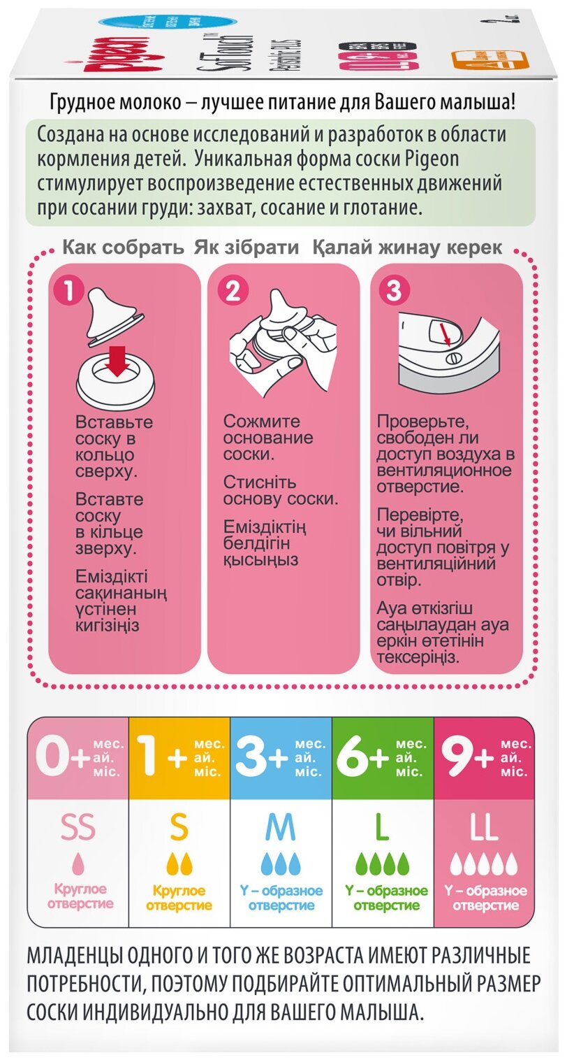На сегодняшний день товар «Pigeon Соска SofTouch Peristaltic Plus размер LL (9+мес.) 2шт силикон 78544» можно купить с кешбеком в 1 магазине: Яндекс.Маркет
