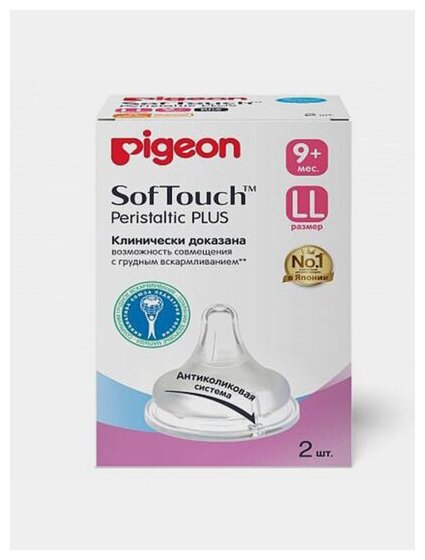 Pigeon Соска SofTouch Peristaltic Plus размер LL (9+мес.) 2шт силикон 78544