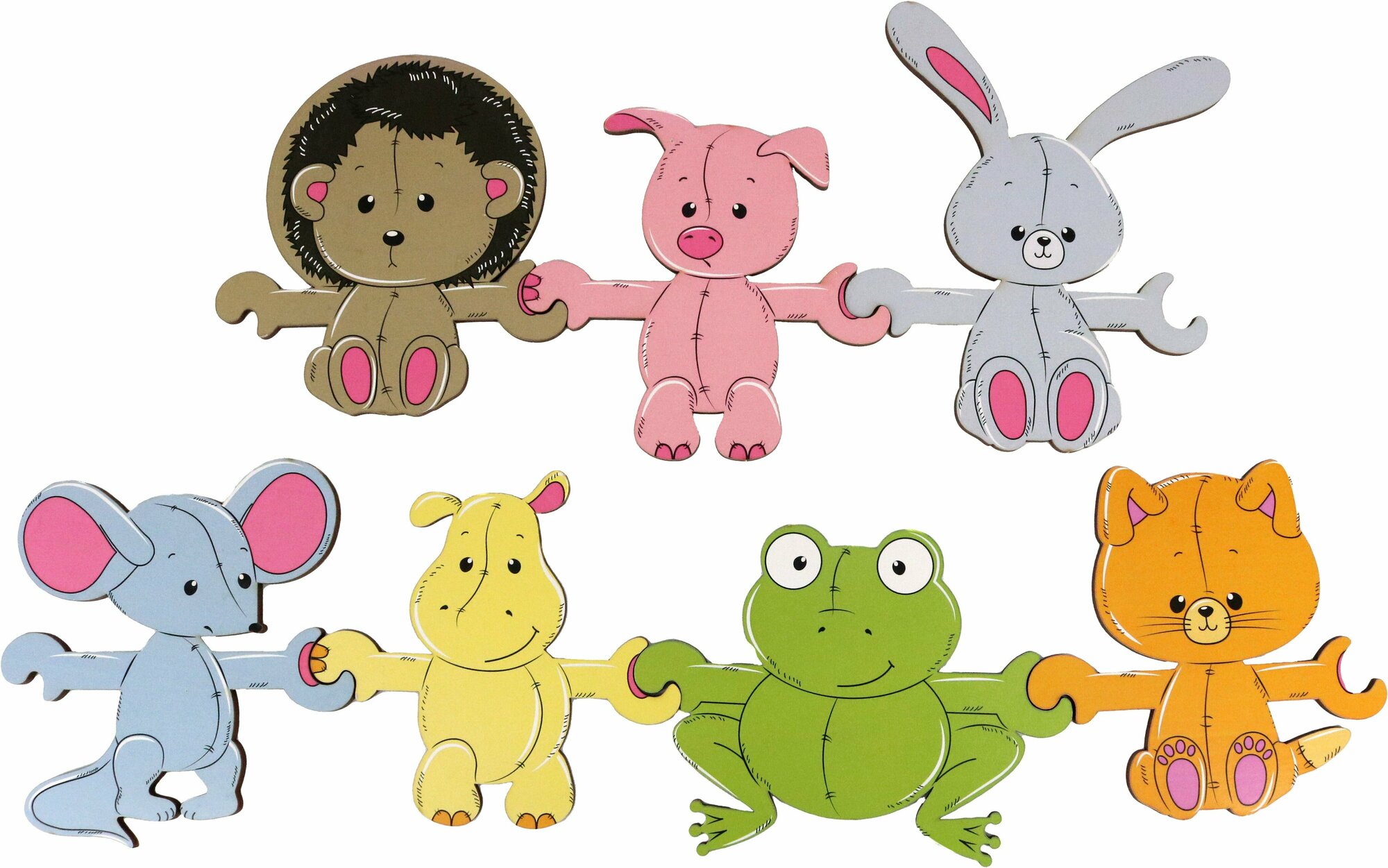 Карусель-игра "Дружные зверята" - это занимательная игрушка - пазл для познавательного развития ребенка и формирования первых навыков конструирования. Игрушка представляет собой набор фигурок с изображением животных (крокодил, бегемот, слон, зебра, обезьяна, лев, жираф), трех карточек-повторяшек и аккуратной коробочки для хранения. Игра очень проста и интересна - нужно соединять между собой фигурки с помощью замочков -ручек. Карусель-игра развивает логическое мышление, память, воображение, зрительное и тактильное восприятие, стимулирует мелкую моторику и координацию движения.