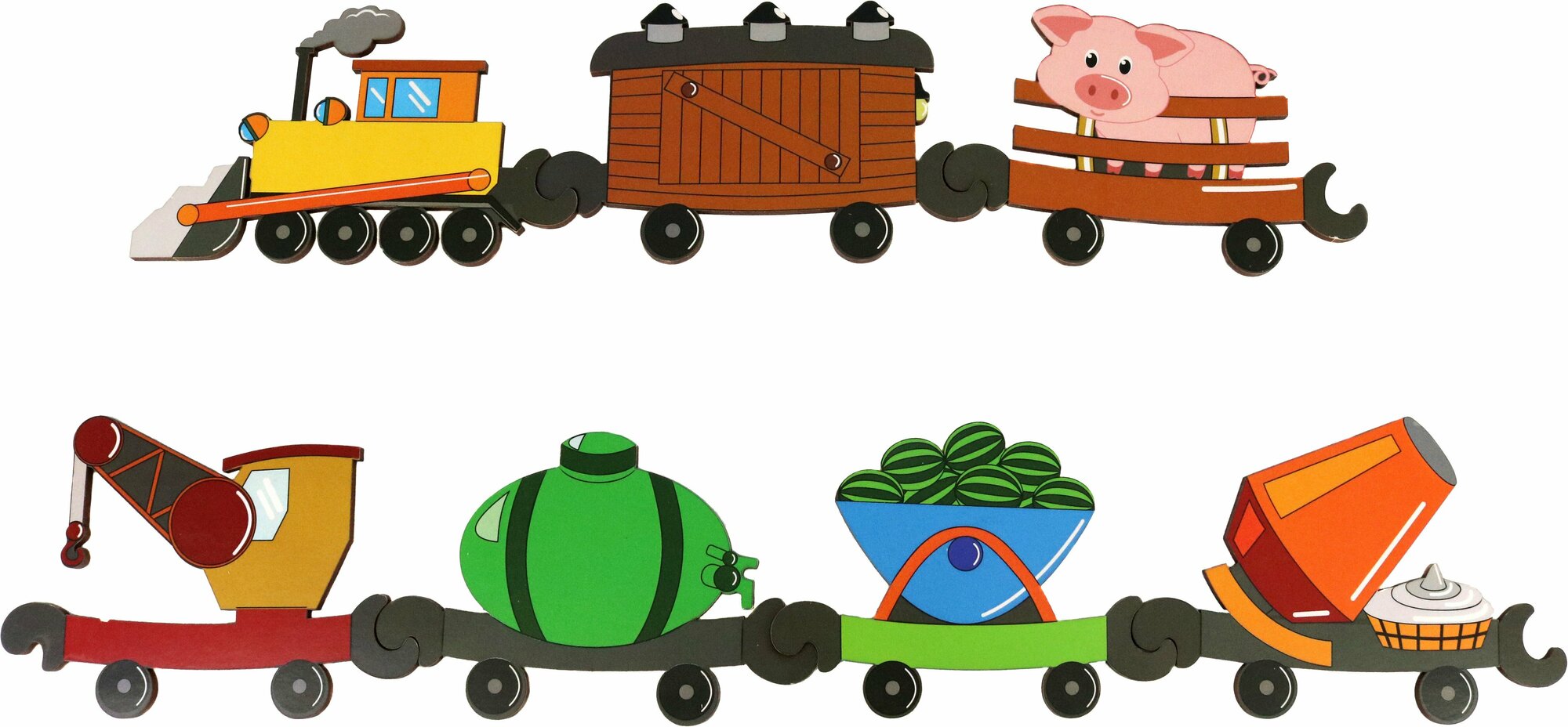 Карусель-игра "Паровоз с вагончиками" - это занимательная игрушка - пазл для познавательного развития ребенка и формирования первых навыков конструирования. Игрушка представляет собой набор фигурок с изображением поезда и вагончиков с разнообразным грузом, трех карточек-повторяшек и аккуратной коробочки для хранения. Игра очень проста и интересна - нужно соединять между собой фигурки с помощью замочков-ручек. Карусель-игра развивает логическое мышление, память, воображение, зрительное и тактильное восприятие, стимулирует мелкую моторику и координацию движения.