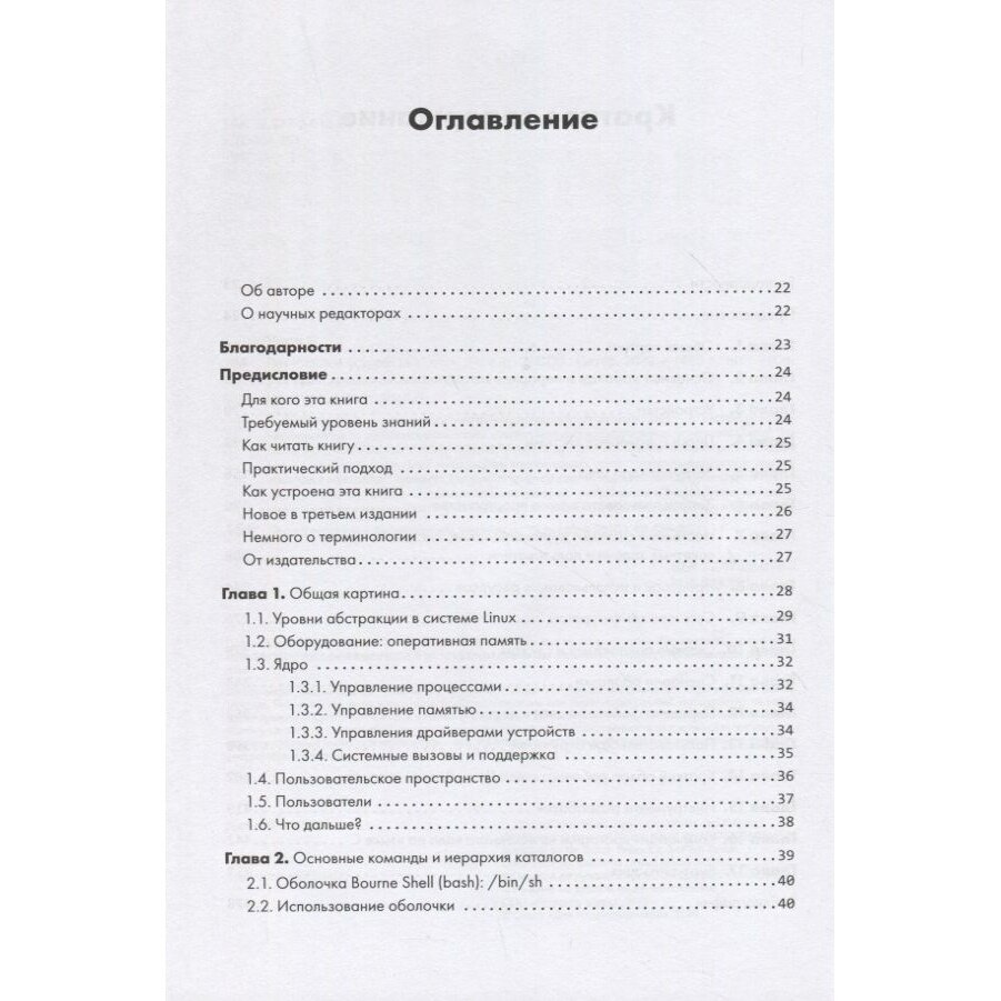 Познакомьтесь со всеми тонкостями работы операционной системы Linux — от системного администрирования до глубинных механизмов, обеспечивающих низкоуровневый функционал Linux. Эта книга, сразу после выхода ставшая бестселлером Amazon, даст вам базовые знания о работе с ядром Linux и принципах правильной эксплуатации компьютерных сетей, о программировании сценариев оболочки и обращении с языком С. Вы изучите вопросы защиты информации, виртуализацию и многое другое. Книга необходима системным администраторам, программистам, специалистам по защите информации, а также всем, кто изучает или хочет изучить Linux максимально быстро и эффективно.