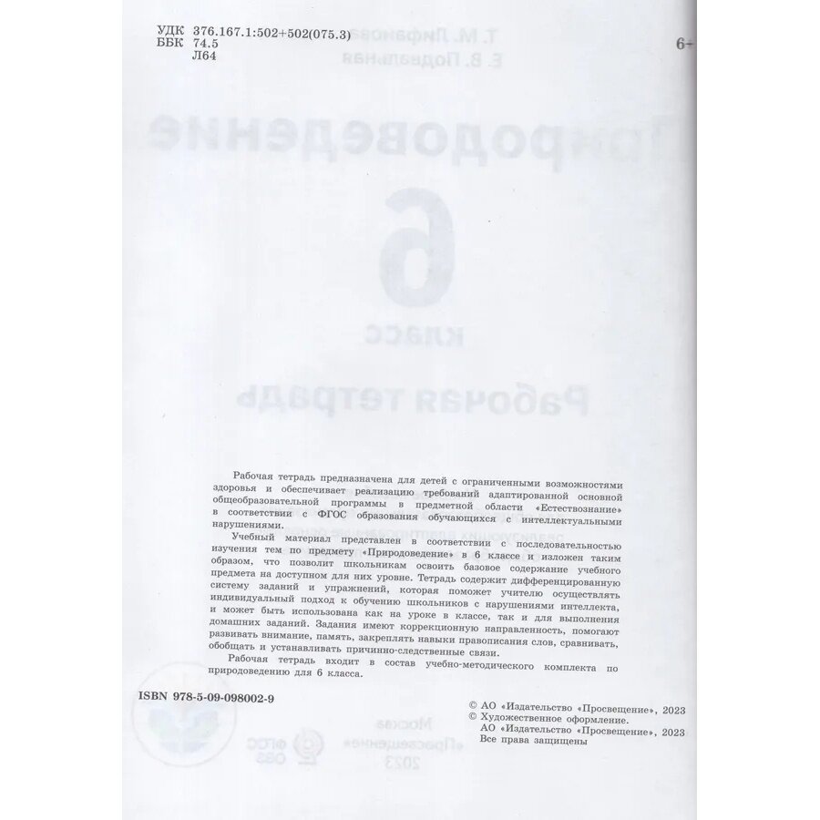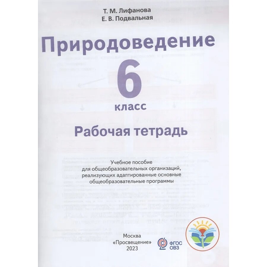 Природоведение. 6 класс. Рабочая тетрадь. Адаптированные программы. ОВЗ (Лифанова Тамара Михайловна, Подвальная Елена Владимировна); Просвещение, 2023