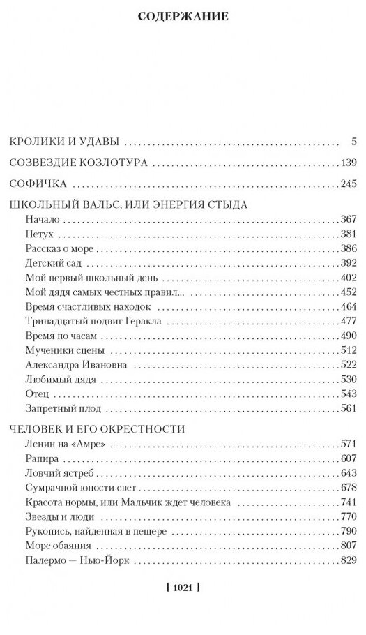 Под одной обложкой собраны совершенно разные истории с абсолютно противоположенными чувствами после прочтения. От моих не очень любимых кроликов и удавов, до душевной Софички. Наверно этим и хорош Искандер. Классика для разных нас. Читайте. Книга объемная и увесистая, бумага белая, обложка красивая, яркая- отлично сочетается с томиком Сандро из Чегема, из этой же серии.