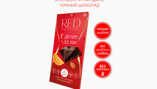 RED - как часть спортивного питания: в одной дольке шоколада RED всего 18 ккал - как в одной дольке яблока, он сладкий, но без сахара - идеально для читмила (планового нарушения диеты).