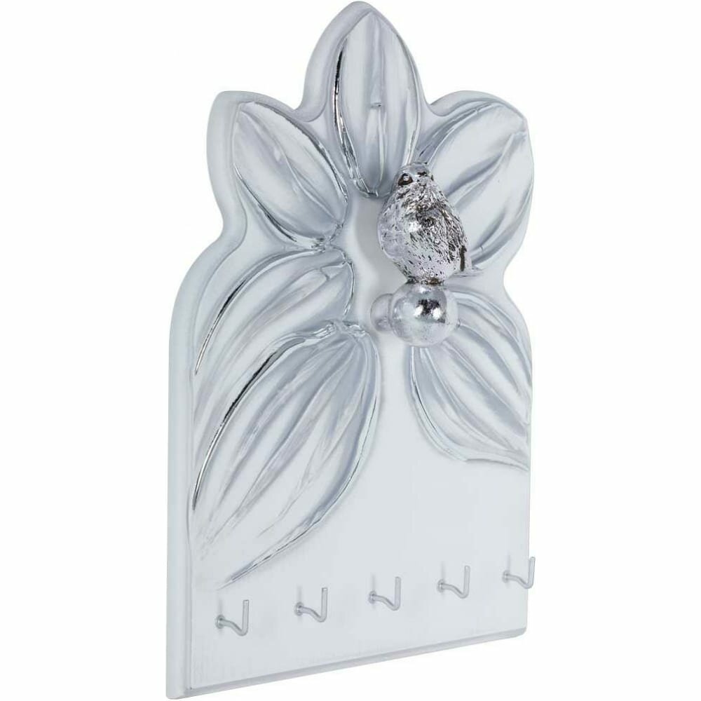 Полка-ключница Зарничка Блум Айс Античное серебро на 5 комплектов ключей. Лицевая сторона шкафчика украшена декоративной композицией.Ключница изготовлена из МДФ.