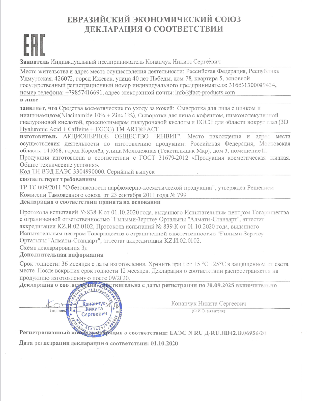 Art&Fact Сыворотка с кофеином 3D Hyaluronic Acid + Caffeine + EGCG 30 мл (Art&Fact ) (ЭХ99989431673)