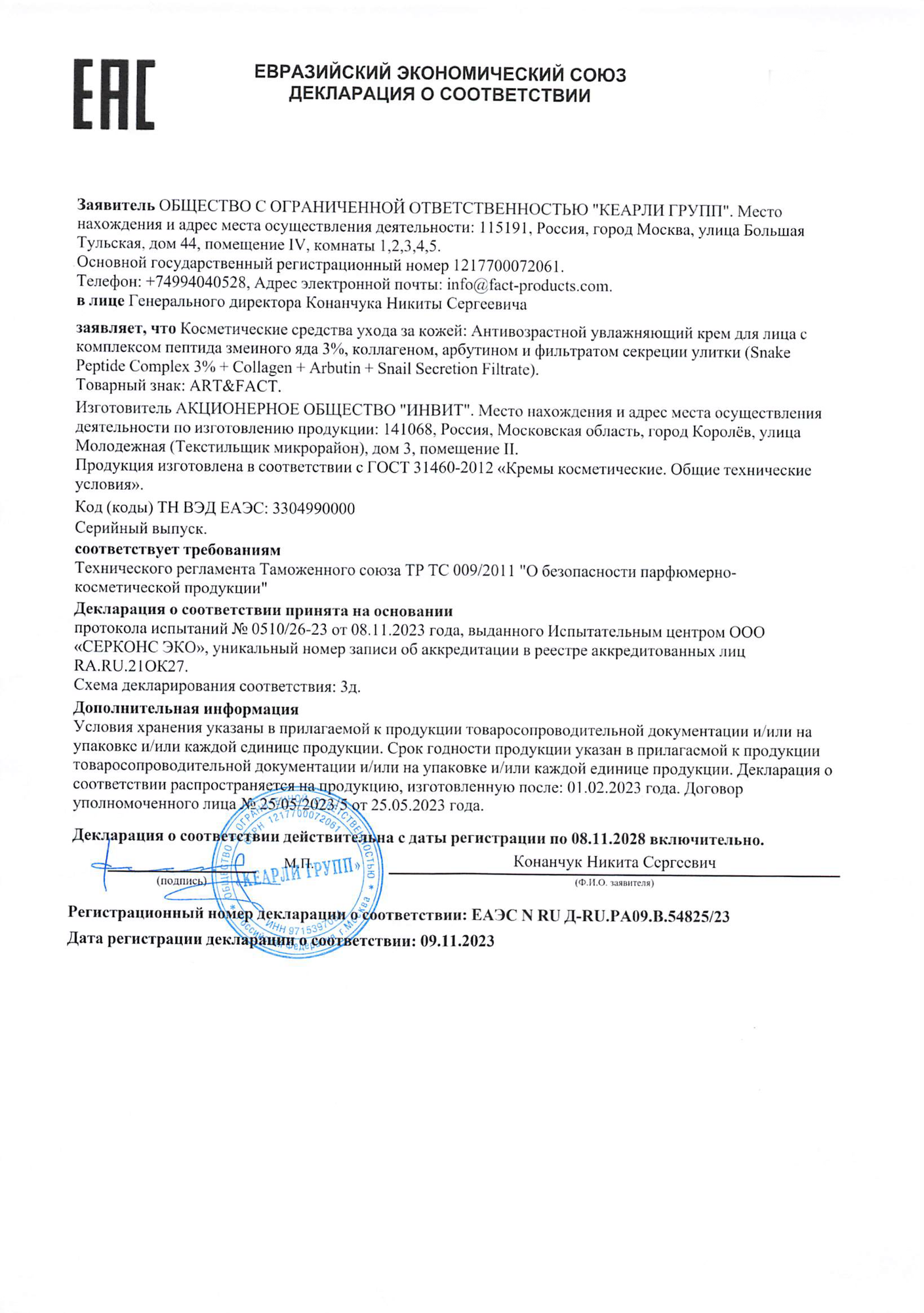 Art&Fact Антивозрастной увлажняющий крем для лица Syn-Ake 3% + Collagen 50 мл (Art&Fact ) (ЭХ99989431693)