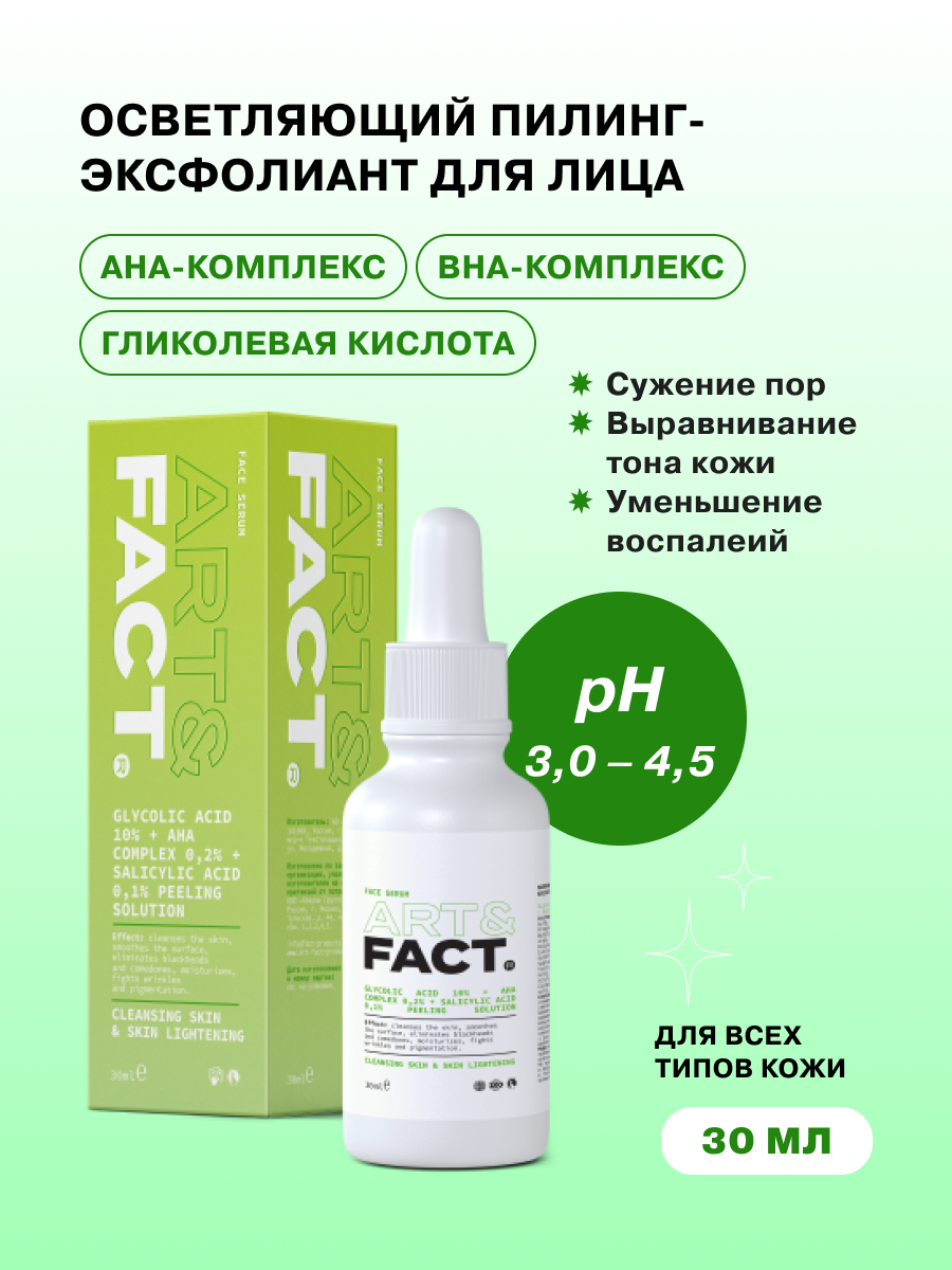 Art&Fact Сыворотка-эксфолиант для лица Glycolic Acid 10% + AHA Complex 02% + Salicyl Acid 01% 30 мл (Art&Fact ) (ЭХ99989431676)